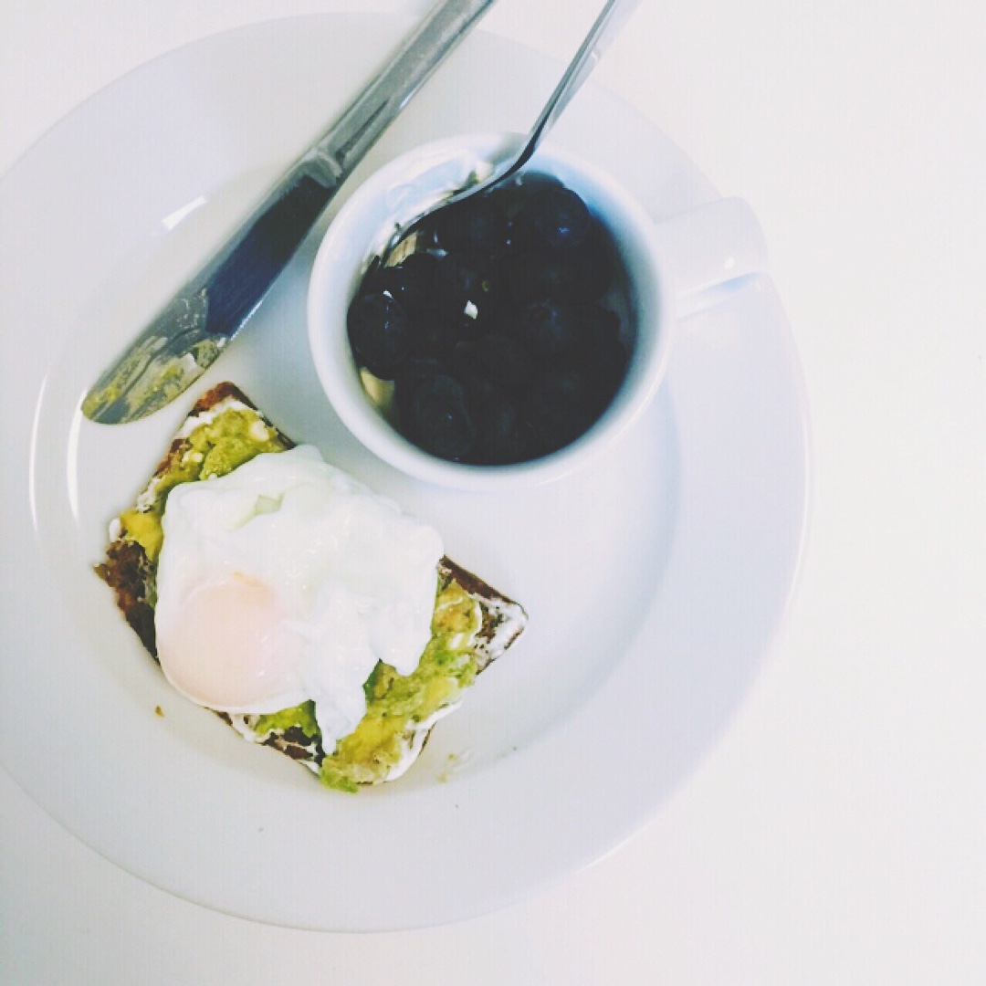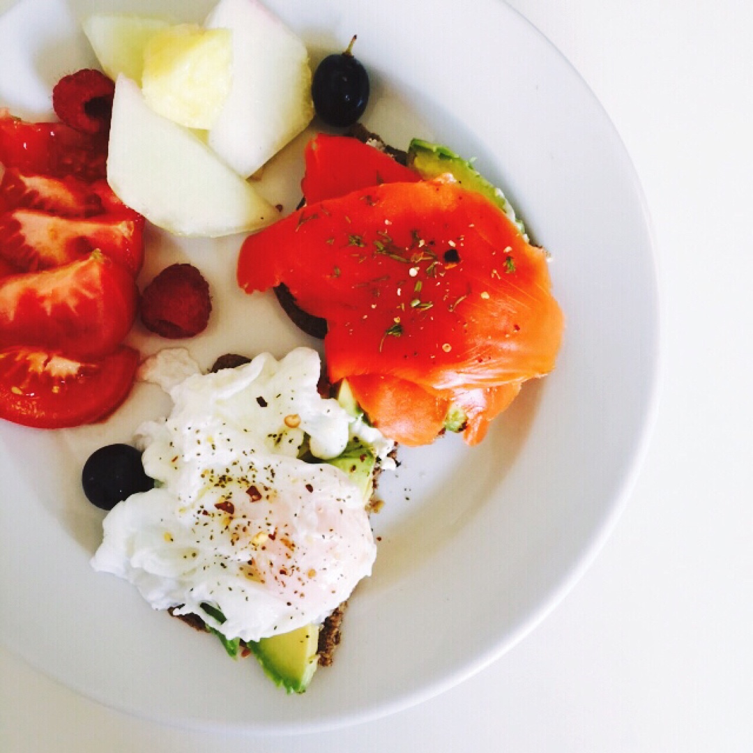 一大早去GYM练cardio 回来准备的丰盛的早餐(:3 黑麦面包抹希腊酸奶 一个陪牛油果流黄蛋 一个配牛油果烟熏三文鱼...