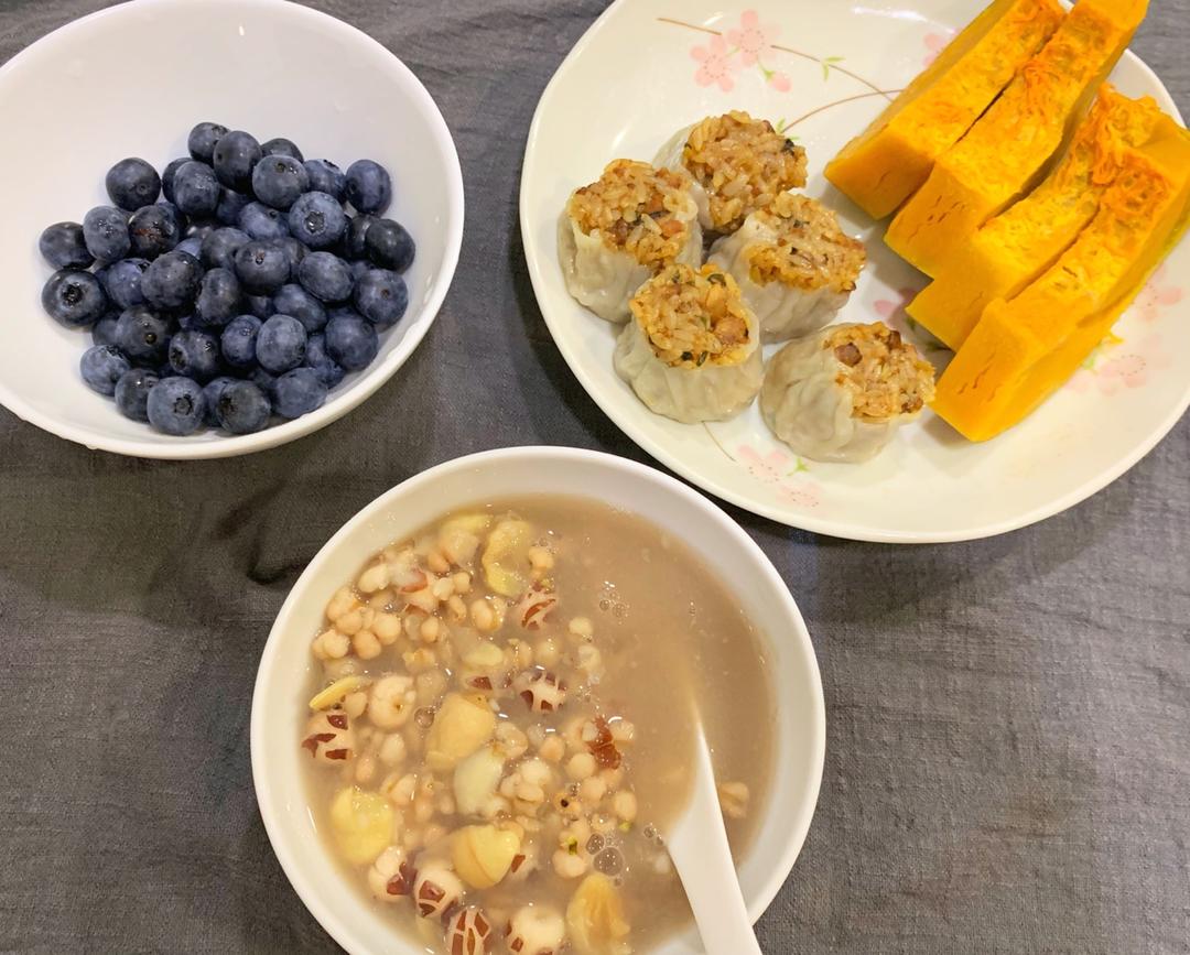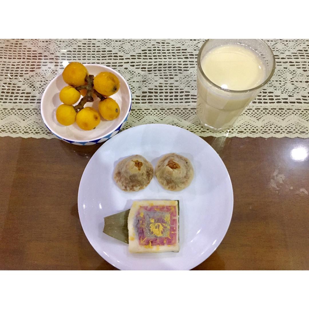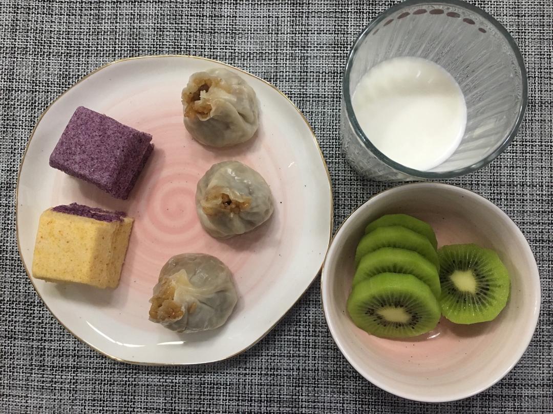 糯米烧卖 小米糕 猕猴桃 牛奶
