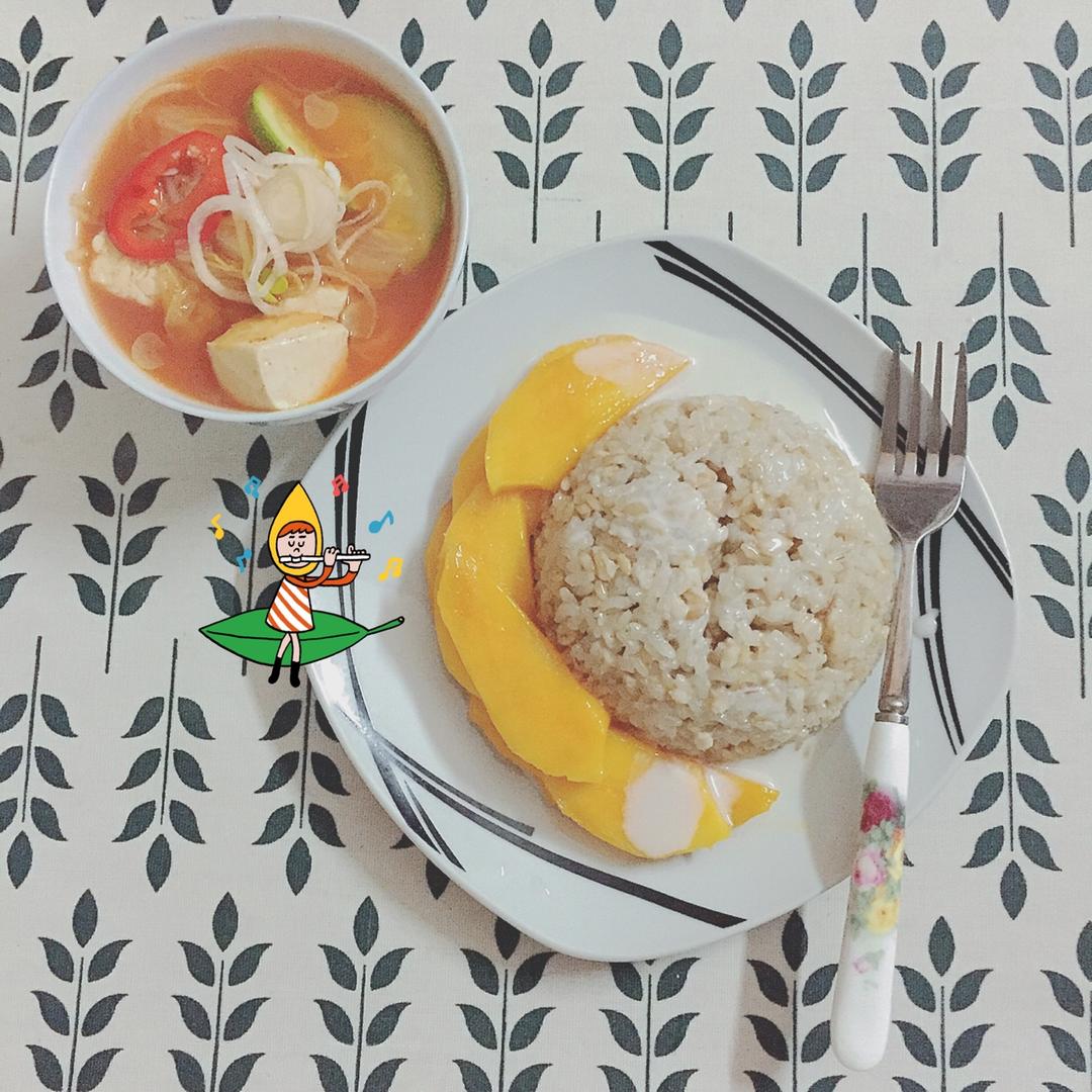 泡菜汤,椰浆芒果糙米饭