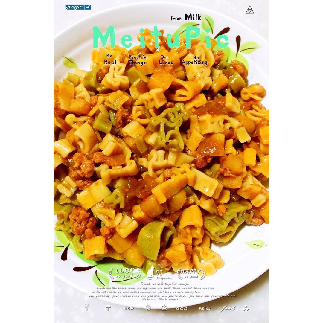 嘿嘿,通心粉是妈妈买的小动物形状的,很有童心有木有?!这样做味道也不错呢!我放了肉末洋葱和土豆。 #晚餐•2016年10...