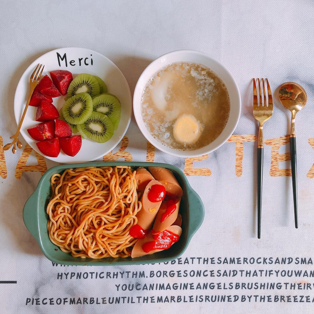 港式车仔面+半碗鲜奶