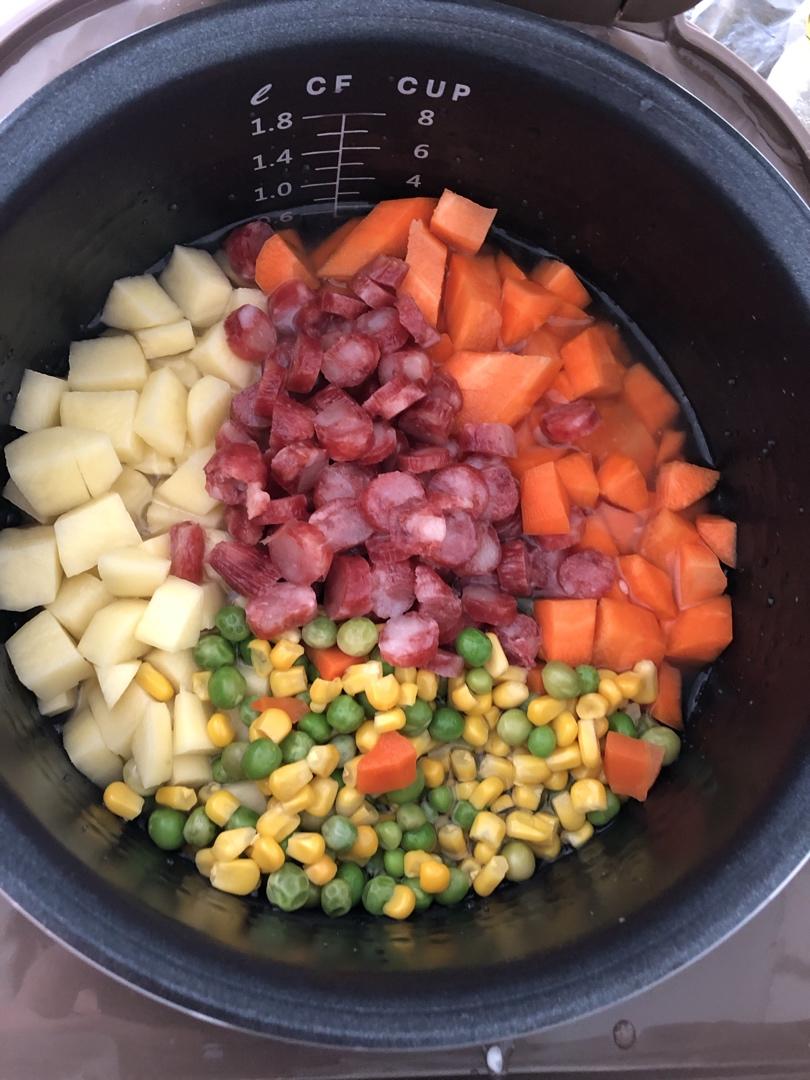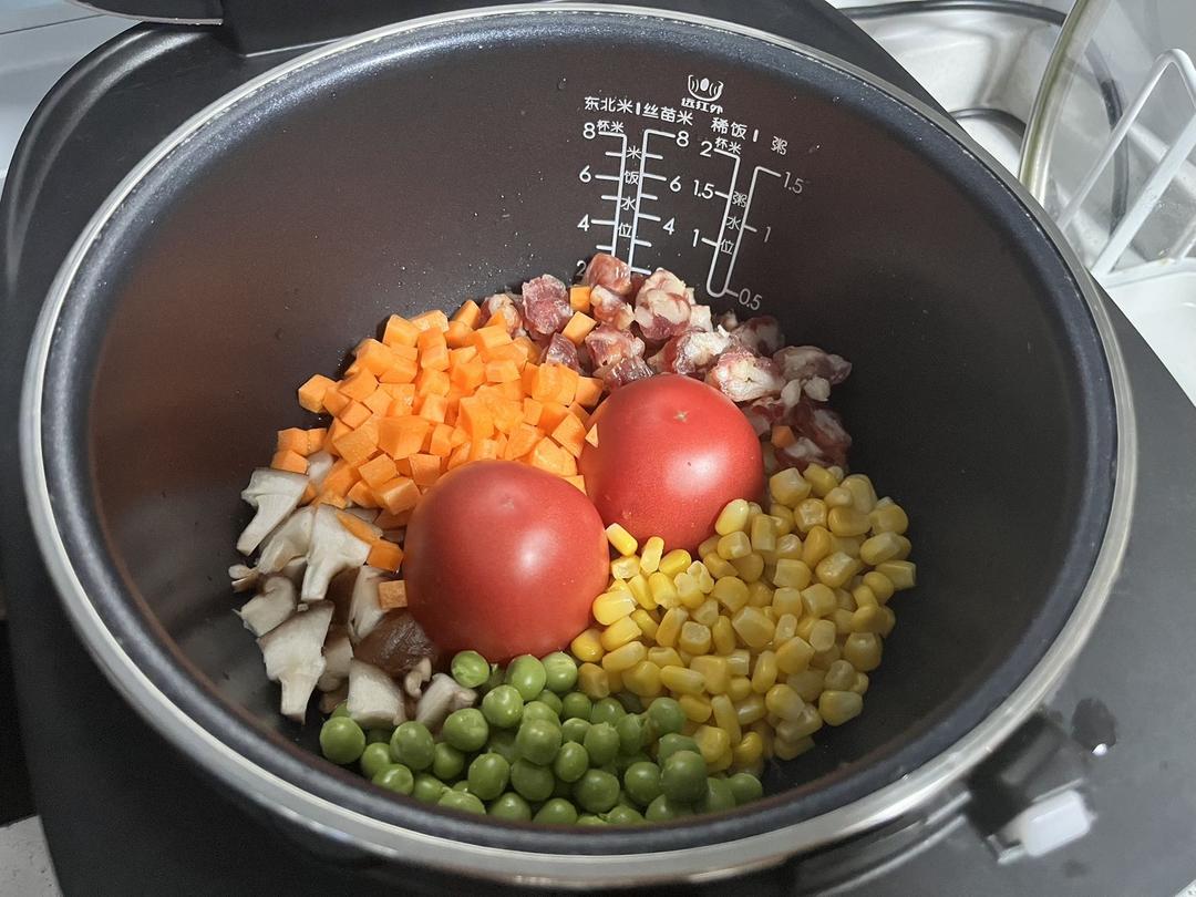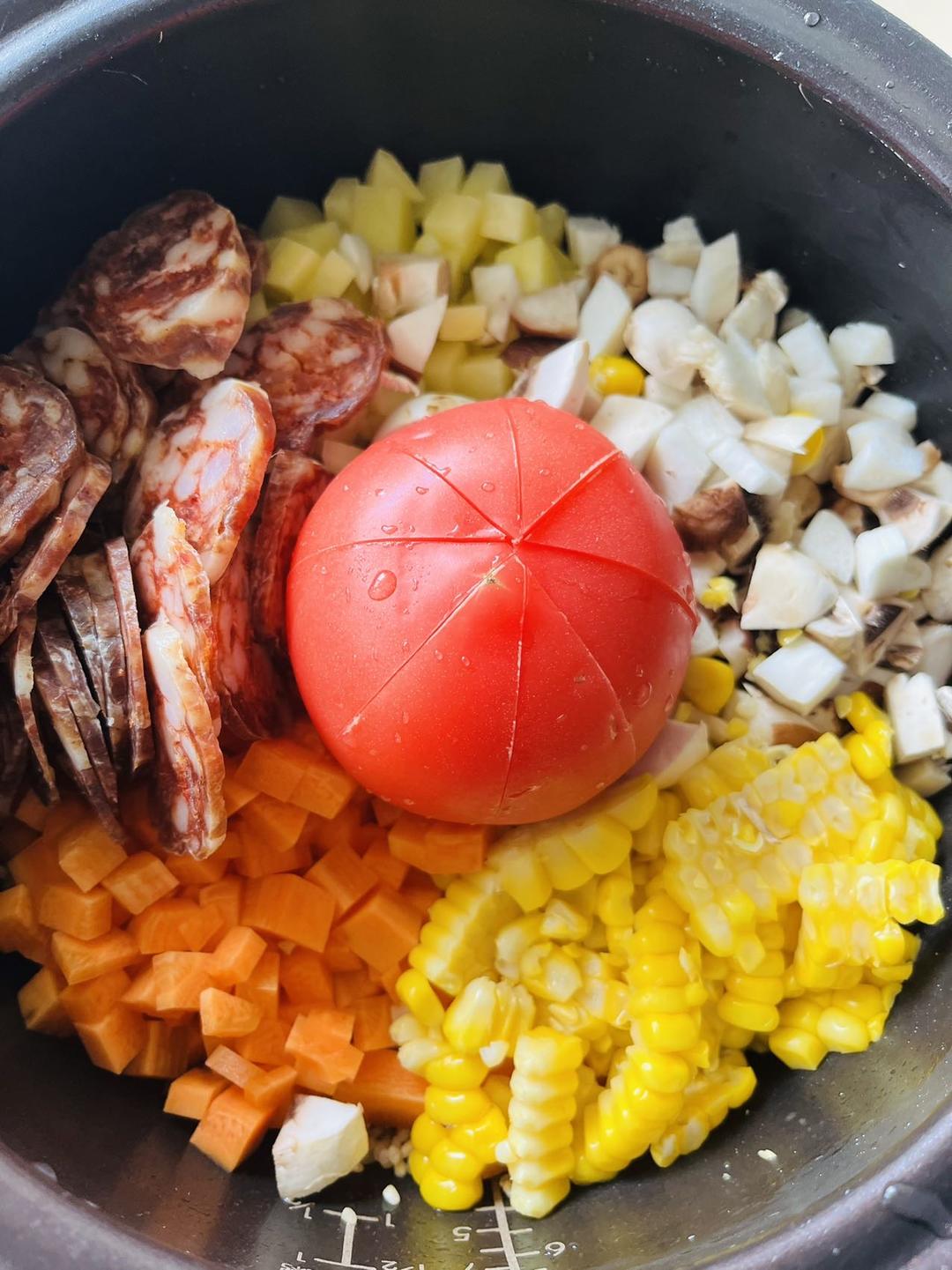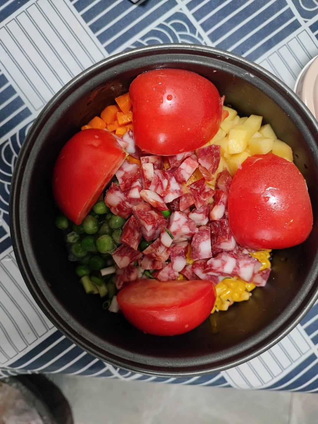 今天做了番茄腊肠焖饭