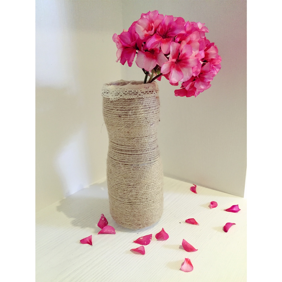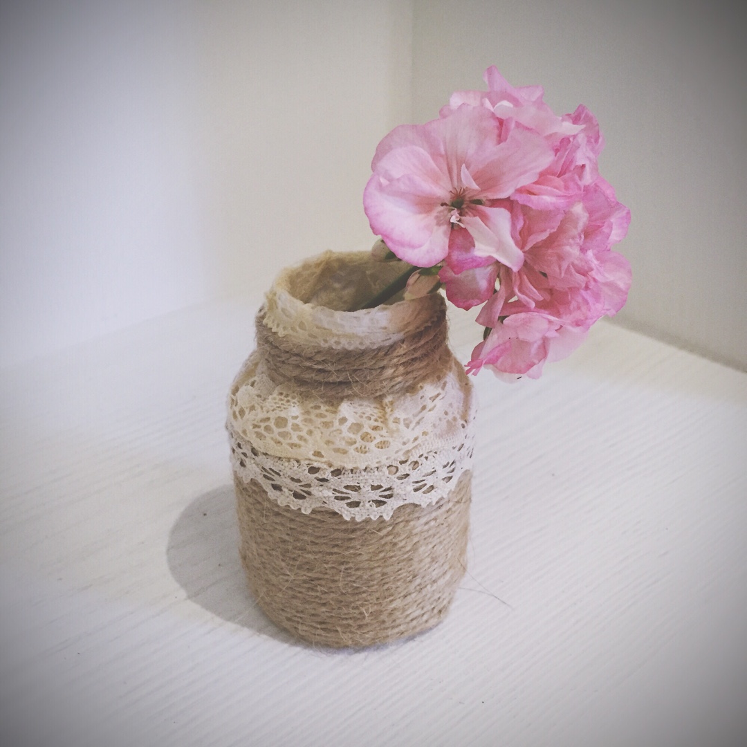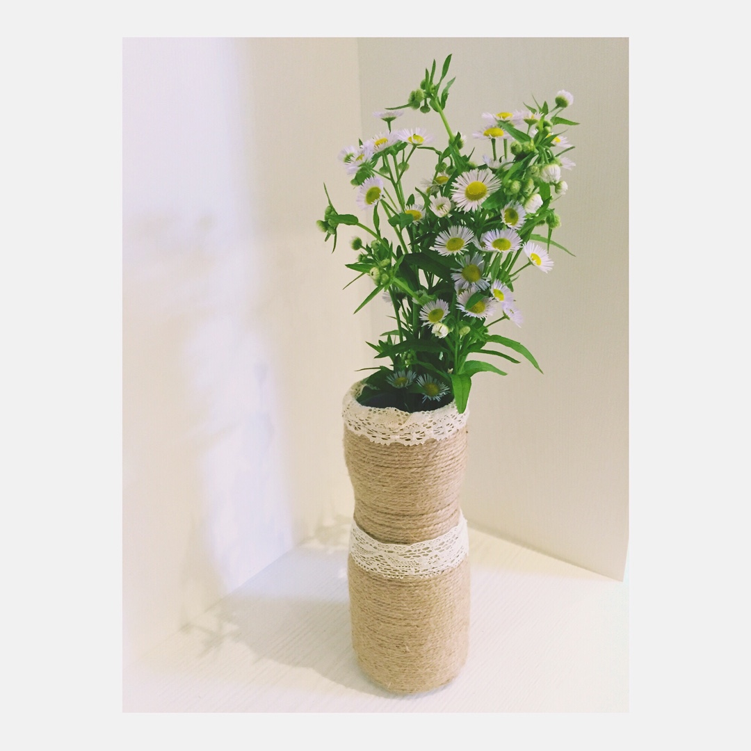 用儿子的塑料零食罐做了一个简易花瓶,插上自己种的鲜花,是不是很文艺范?