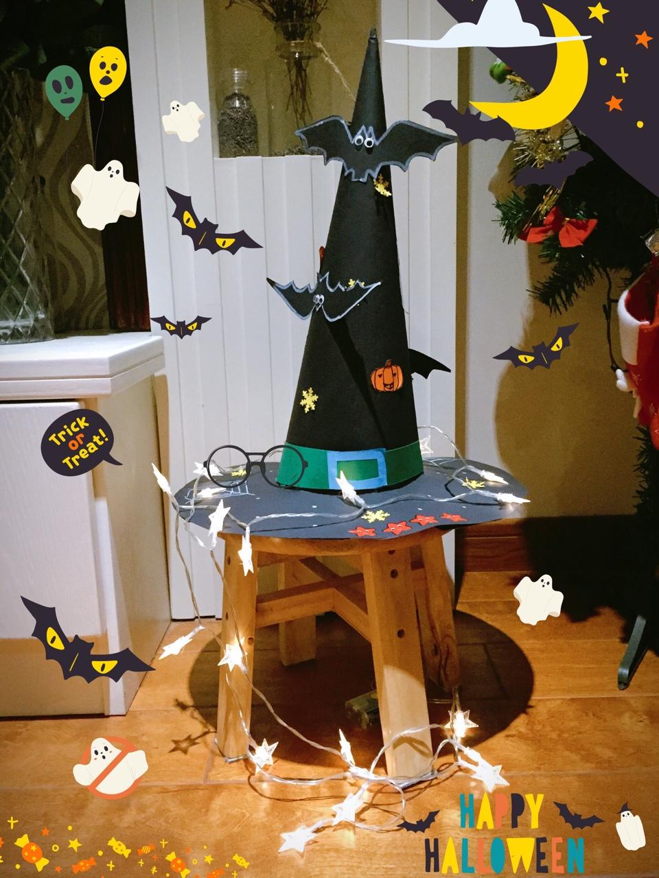 Trick or Treat!今天亲子美育课和小伙子一起做了女巫的帽子🎩,😜😜😜。