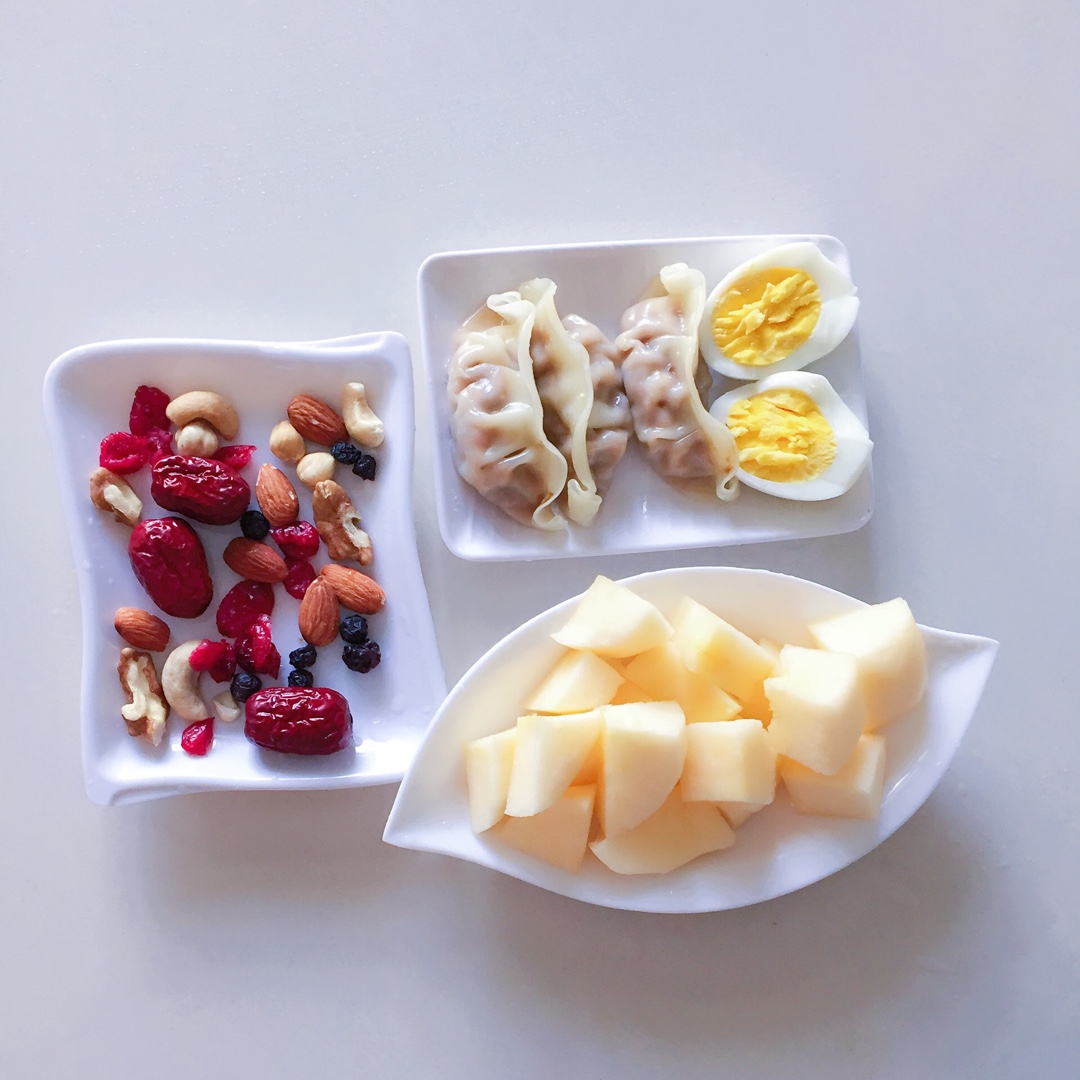 蒸饺➕水煮土鸡蛋➕苹果
