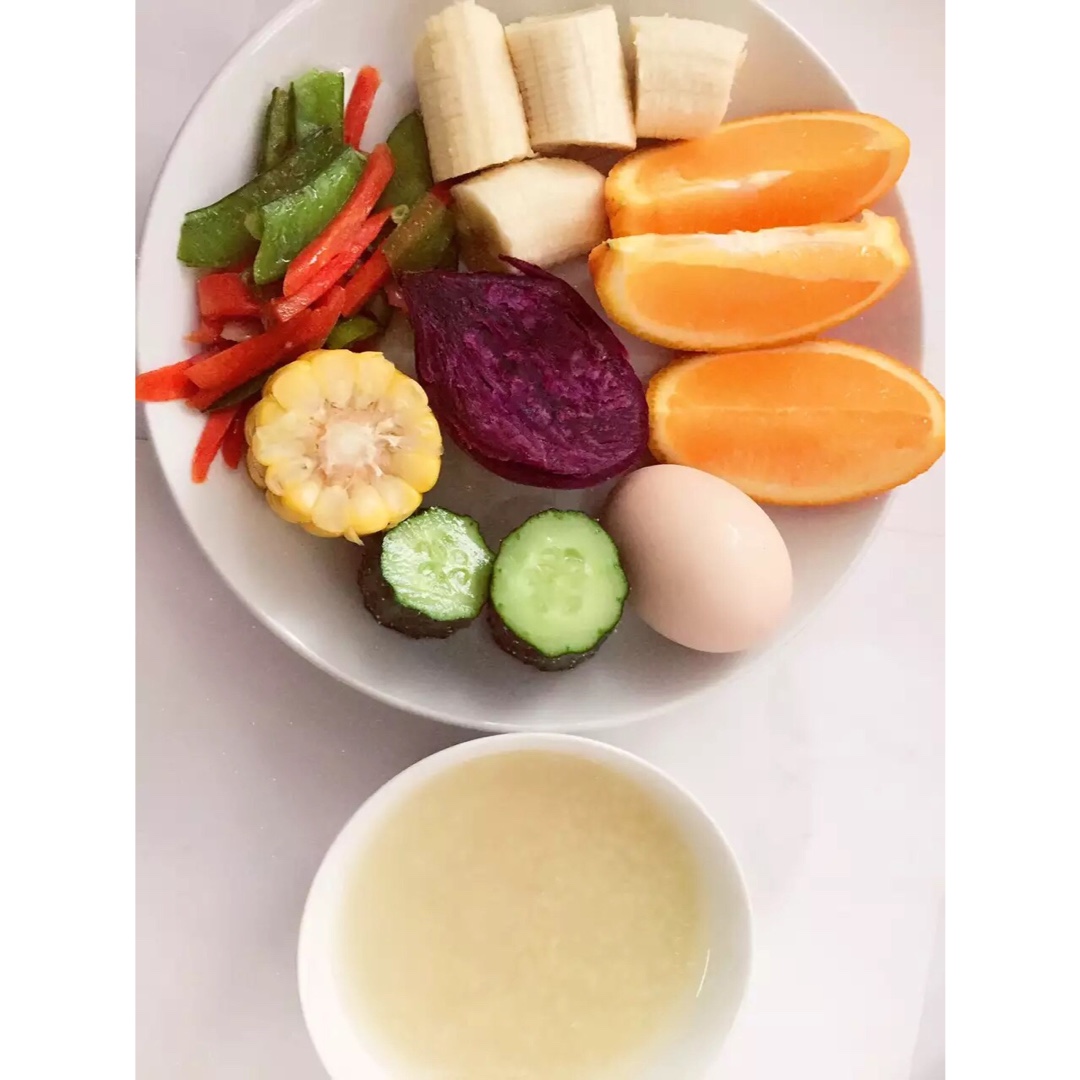 小米粥➕杂蔬➕水果类➕水煮蛋