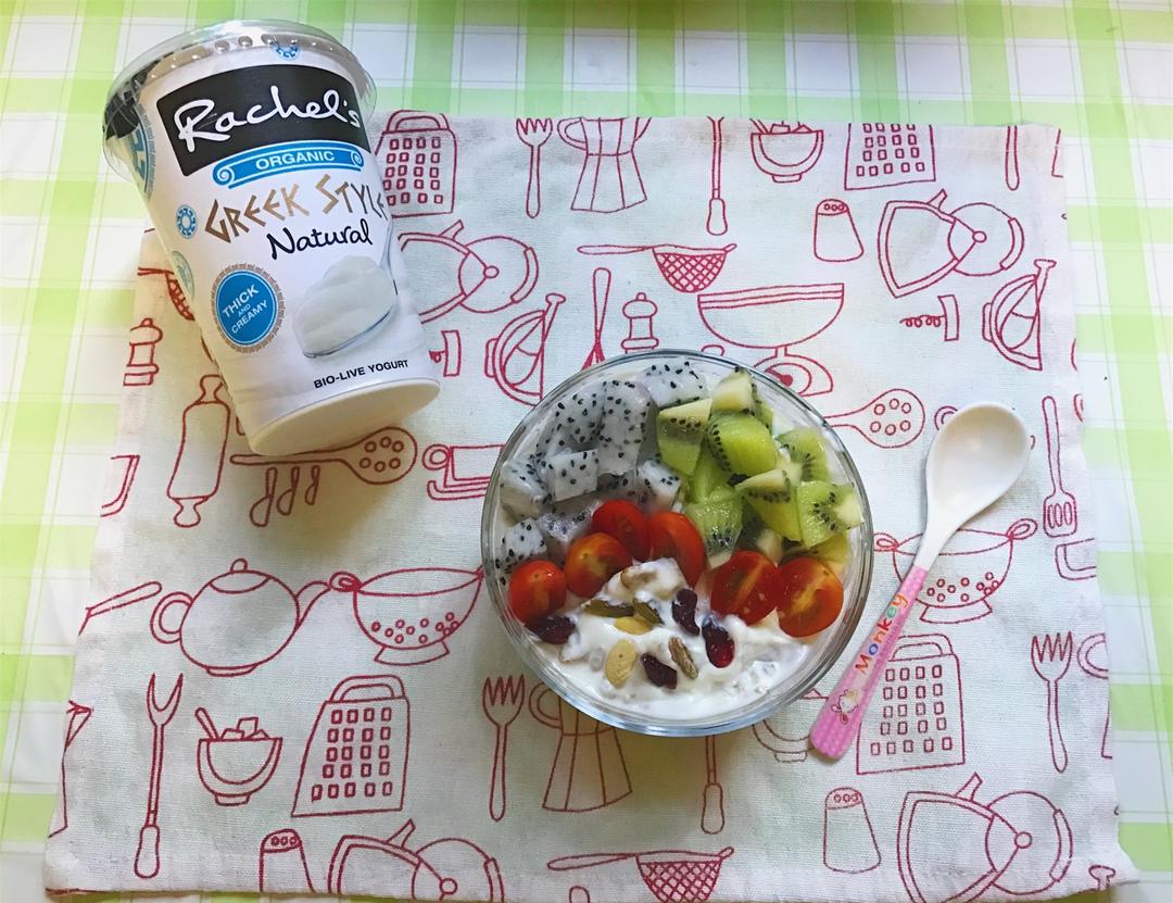 一大碗红薯+酸奶+燕麦片+水果的饱足早餐