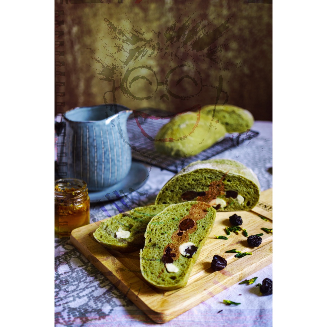 我亲耐滴老师与我的抹茶乳酪蓝莓软欧的完美结合!一张充满喜感的早餐图,开开心心笑口常开。