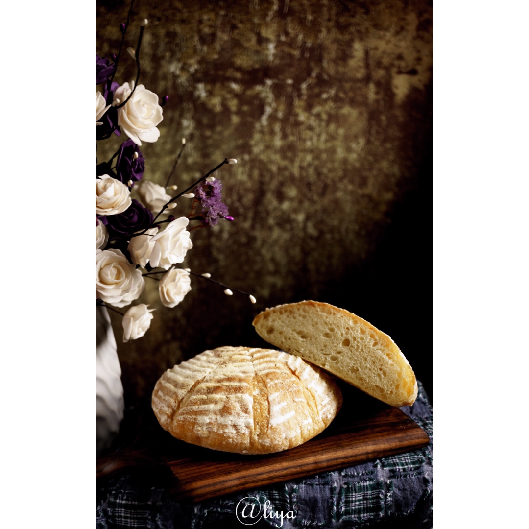 第一次用发酵篮,粉撒的不够有点粘了以至于倒扣出来变形了