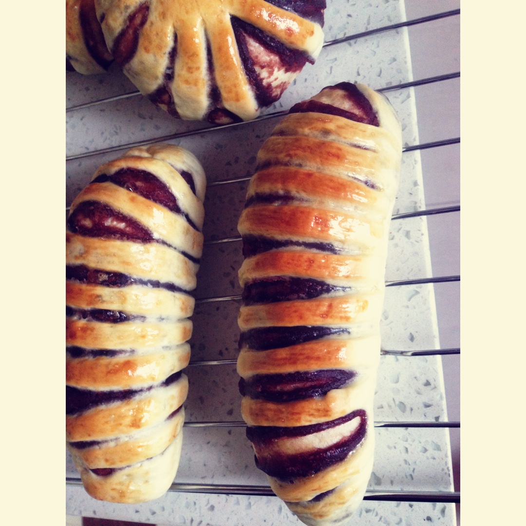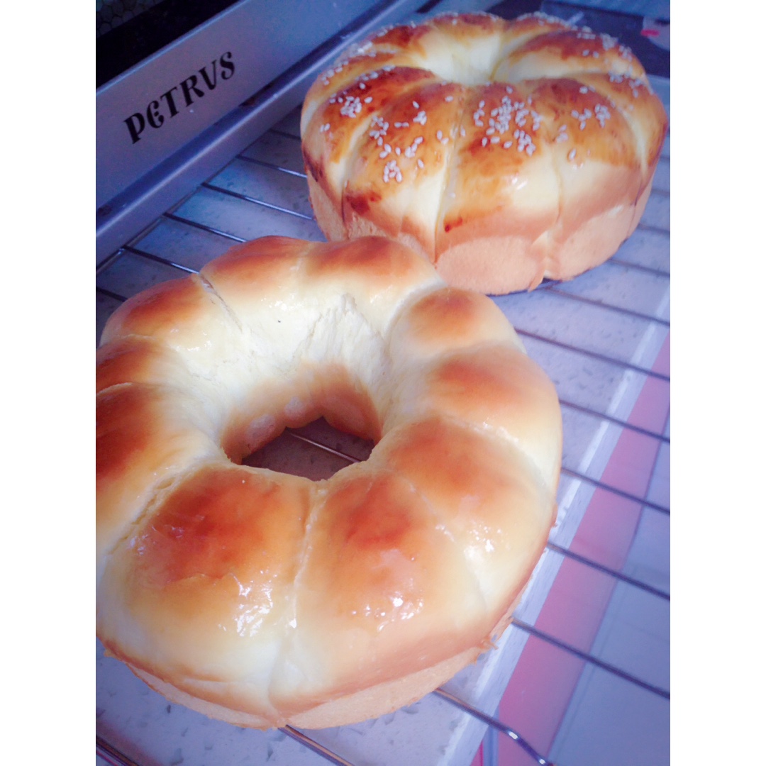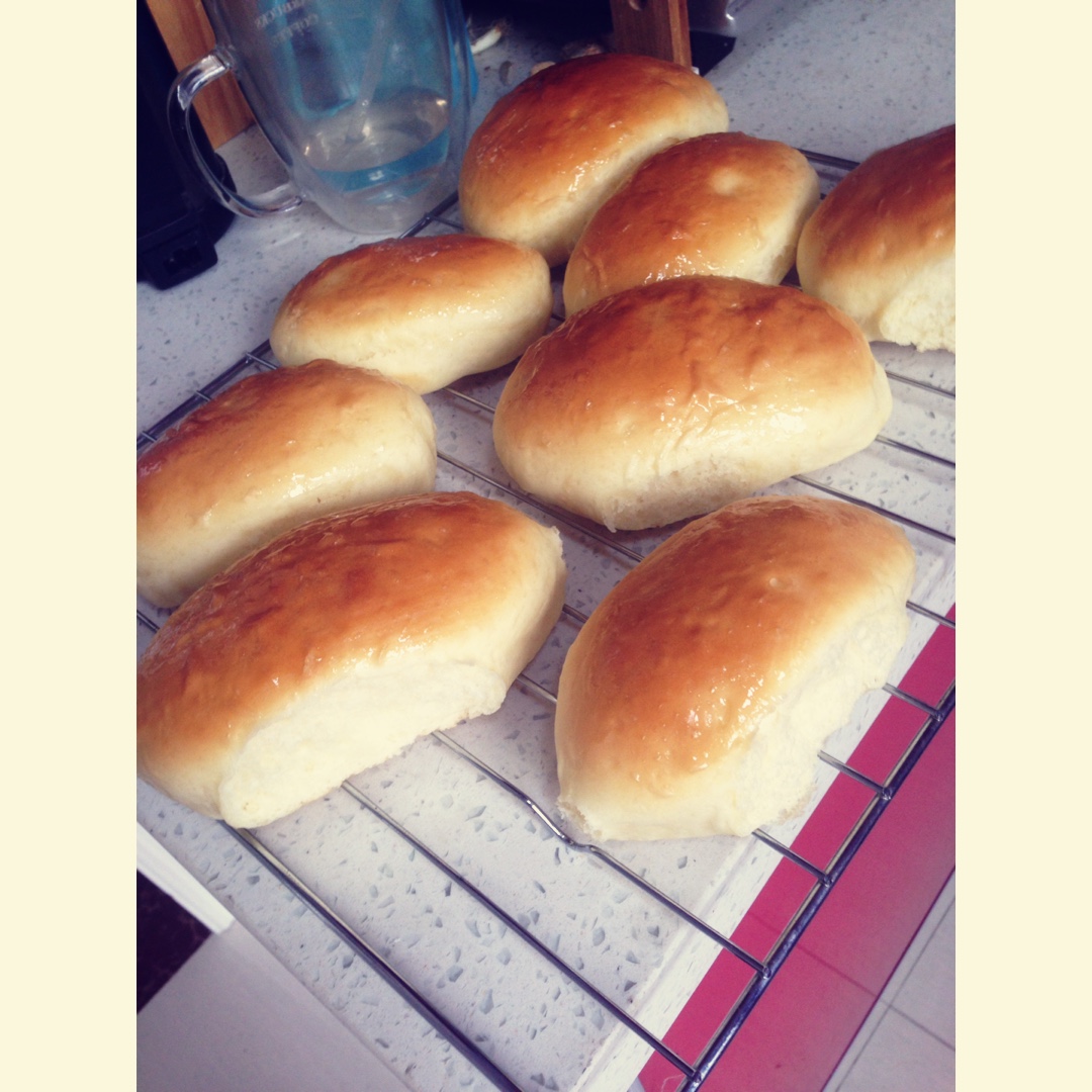 排气擀面杖找不着了,直接手挤泡泡,给娃当早饭吃的牛奶餐包,好香浓!