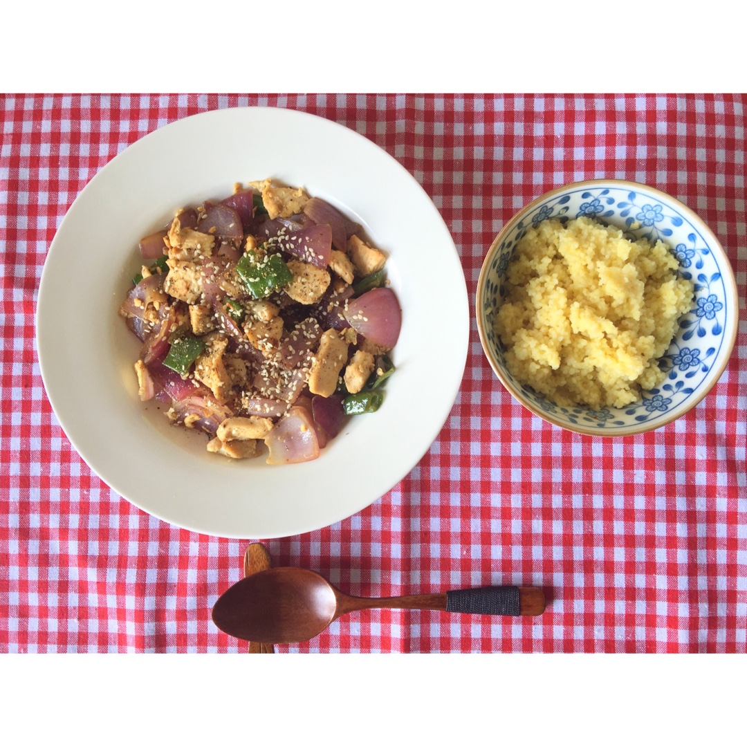 减脂餐,鸡胸裹了一点蛋液9味道很不错。就是减脂一个月好久没吃辣椒才放一个就辣得不要不要的… #午餐•2016年5月29日...