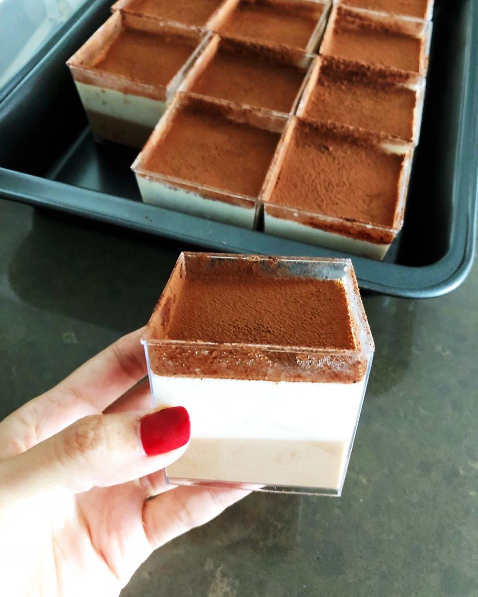 方子稍微改了一下,下层是茉莉奶冻,上层是荔枝乌龙茶冻,不要太好吃了