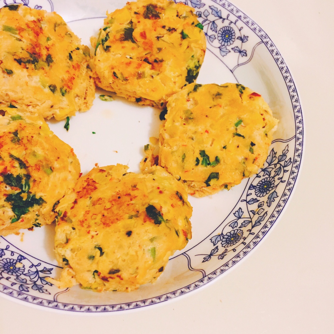 成功把冰箱里的鸡蛋和香菜消耗掉!放了香菜和辣椒的金枪鱼饼微煎就能闻到很香的味道 鱼露真的不能少hhh 两块蛋白质就17g...