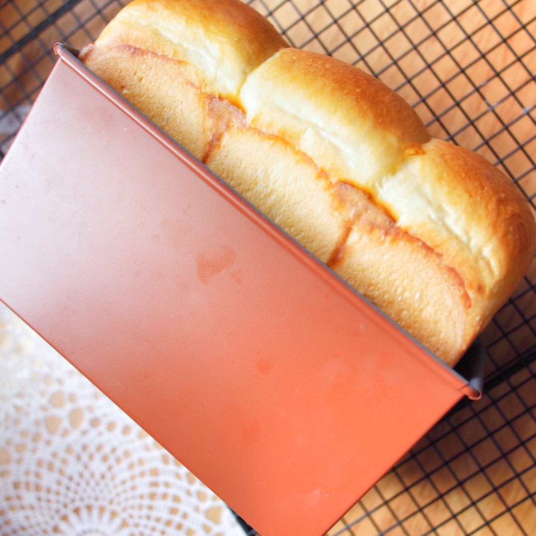 前一晚打好面团,松弛下来整形入模具放冷藏过夜,第二天一早起来接着放发酵箱发到9分烤。