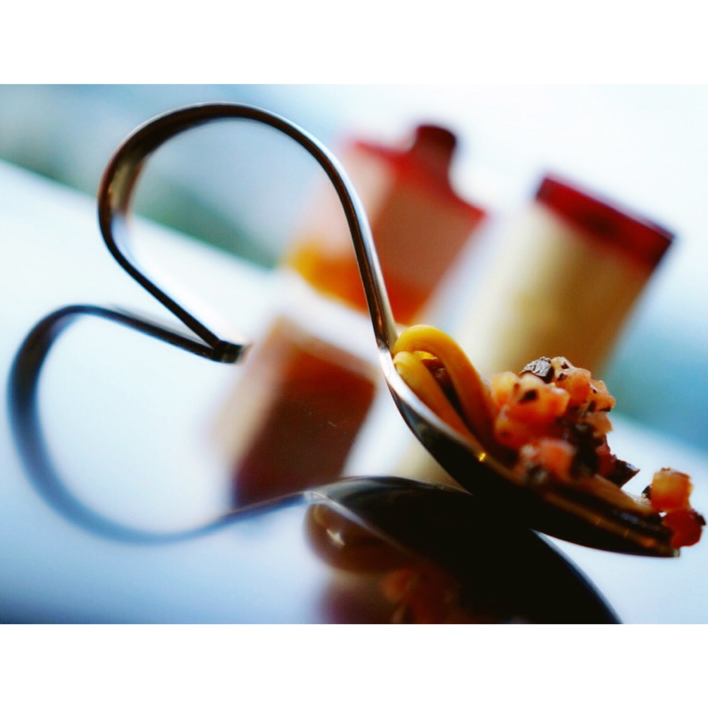 配贻贝(Mussel),鲜得我哟~今儿抽屉角落里翻出一个几年前在丹佛时候买的勺子,结果玻璃桌上一放,好有爱(⁎⁍̴̛ᴗ⁍...