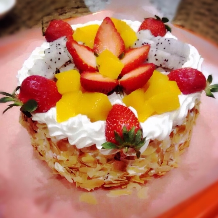 没有裱花台,不会抹面,且裱花是硬伤,杏仁片派上用场😂 #纯属吃货#