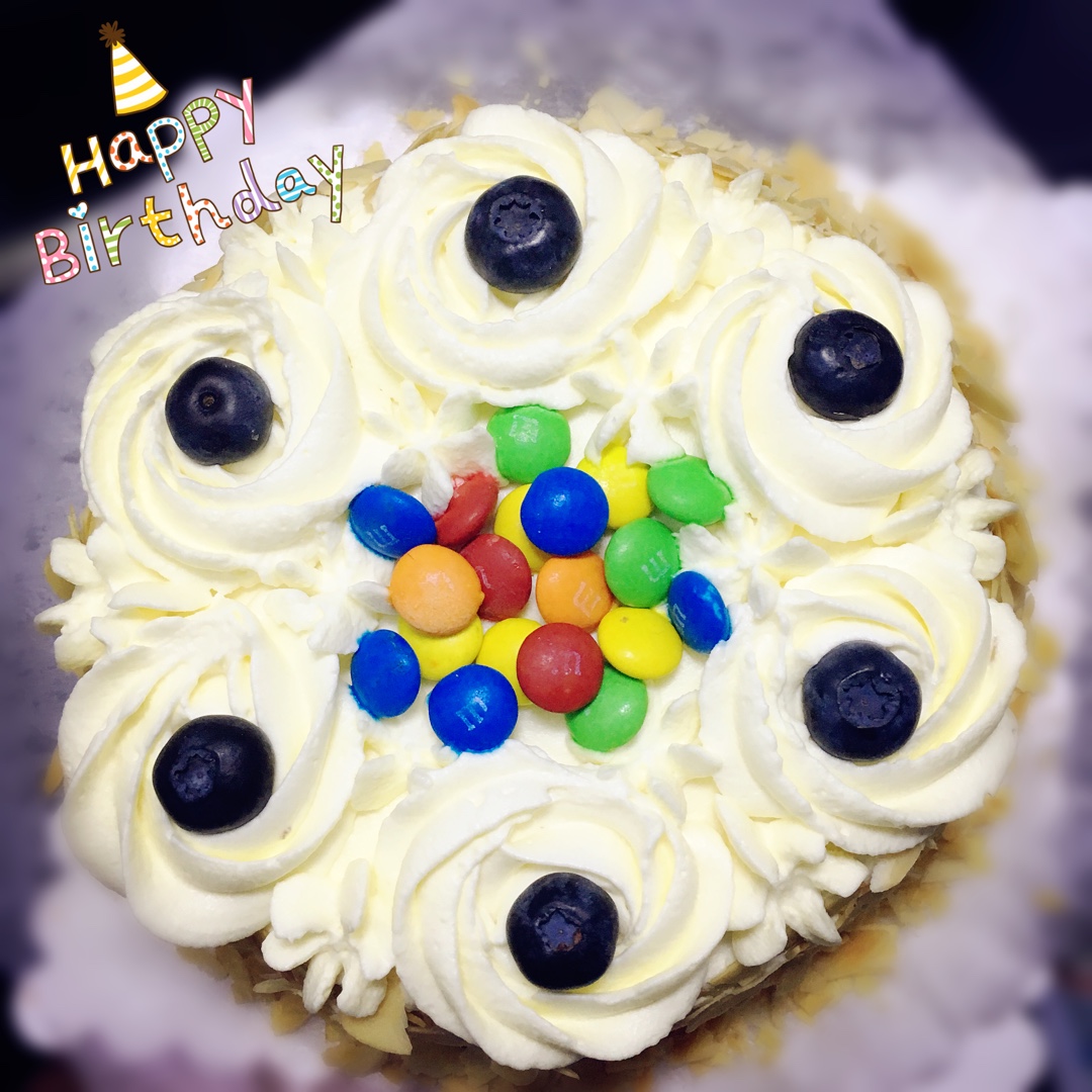 我这个裱花水平不行,没有色素,用M豆装饰。 #纯属吃货#
