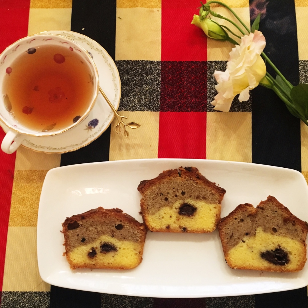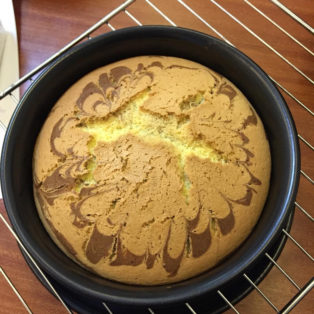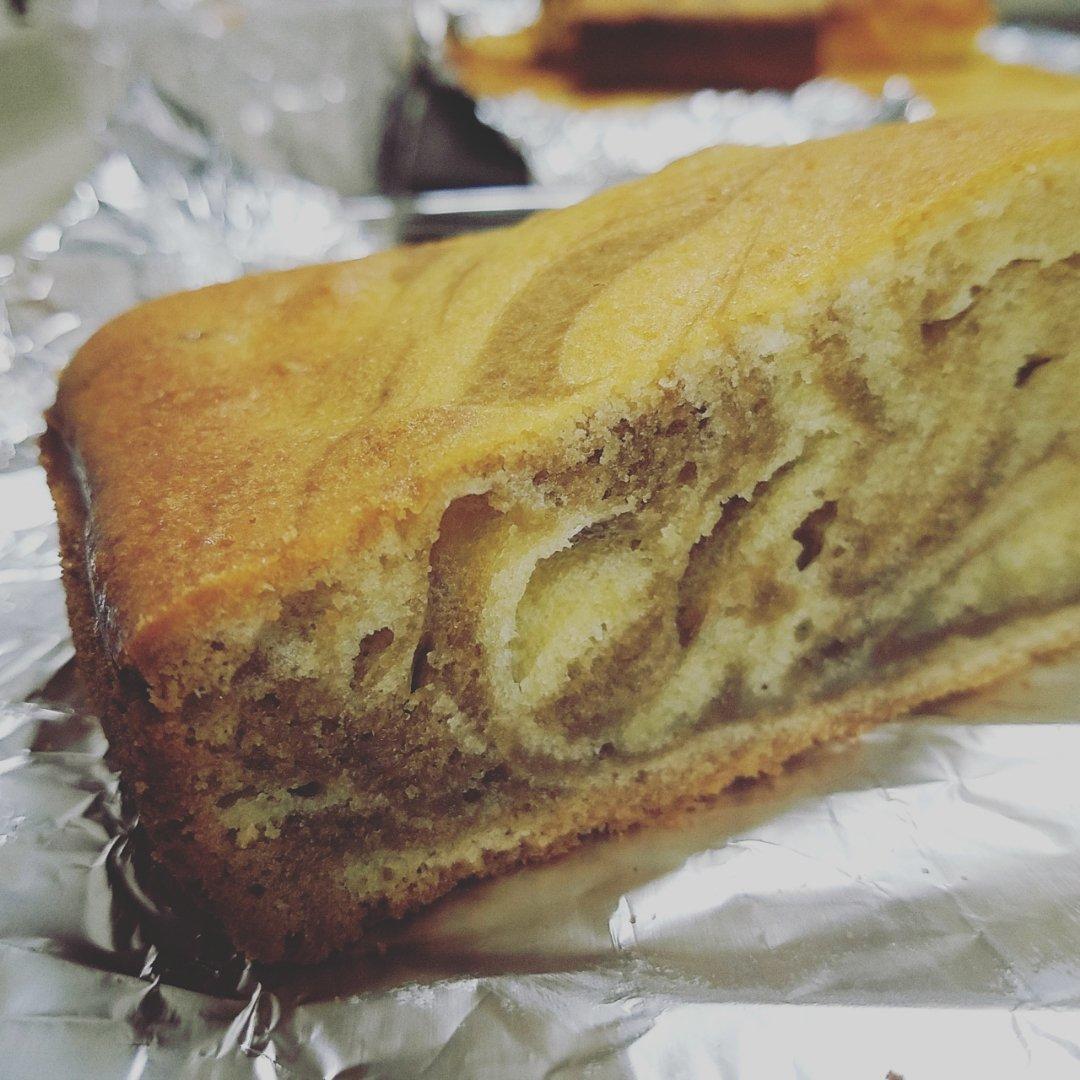 按照这个方子手法做了云石蛋糕,面糊对半,一半加的是6g巧克力粉。第一次尝试,非常成功,不湿!干爽好吃!