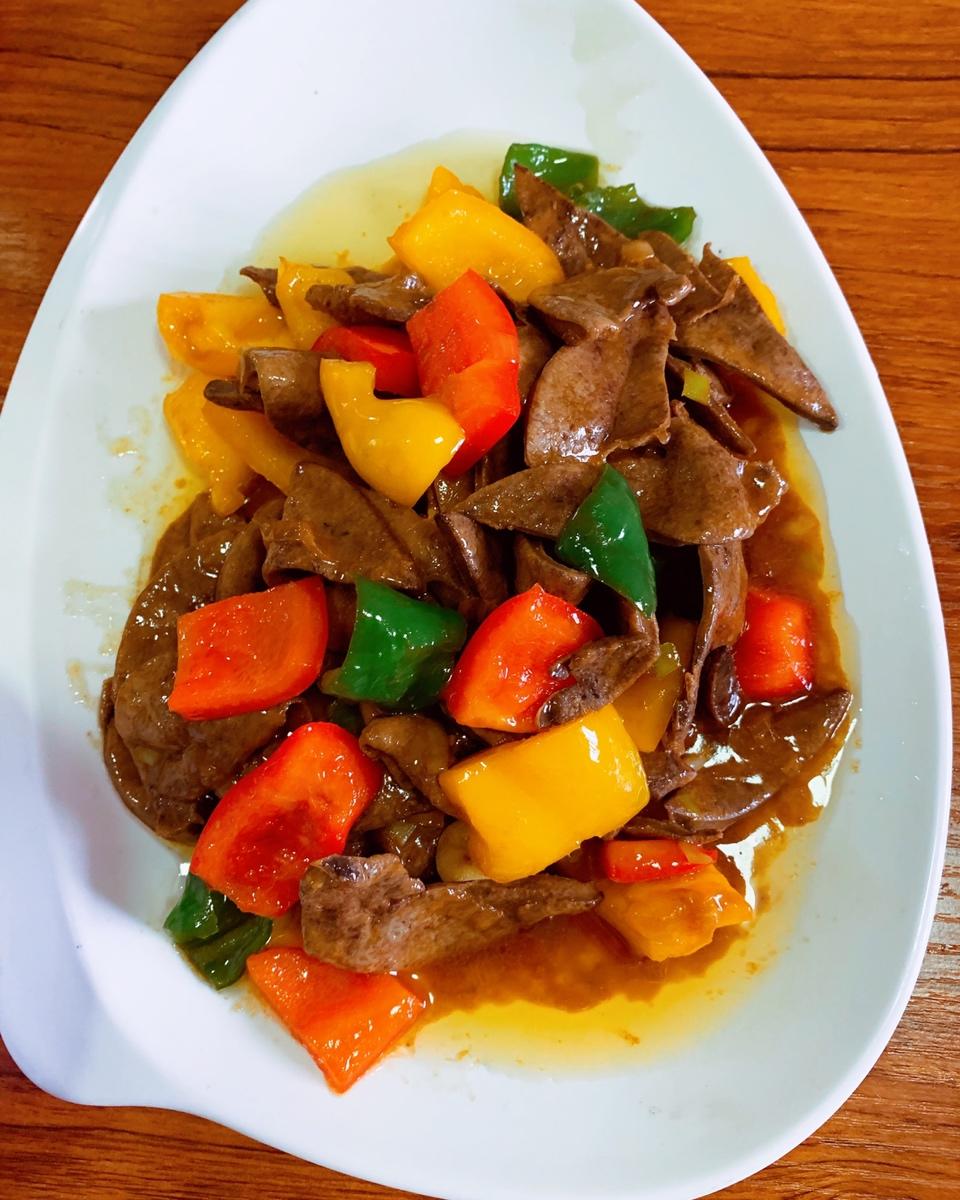 今天买的鲜鱿鱼不错,家人都说很嫩滑,脆口。青红彩椒最好吃了,酸甜甜的。多放了点黄豆酱和耗油,颜色浓了点卖相差了点