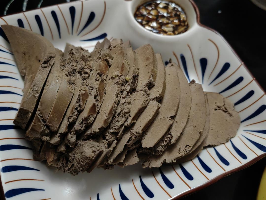 搜到的羊肝的做法,真的一点不膻气,很好吃,沾韭菜花酱也好吃,沾蒜汁也好吃。