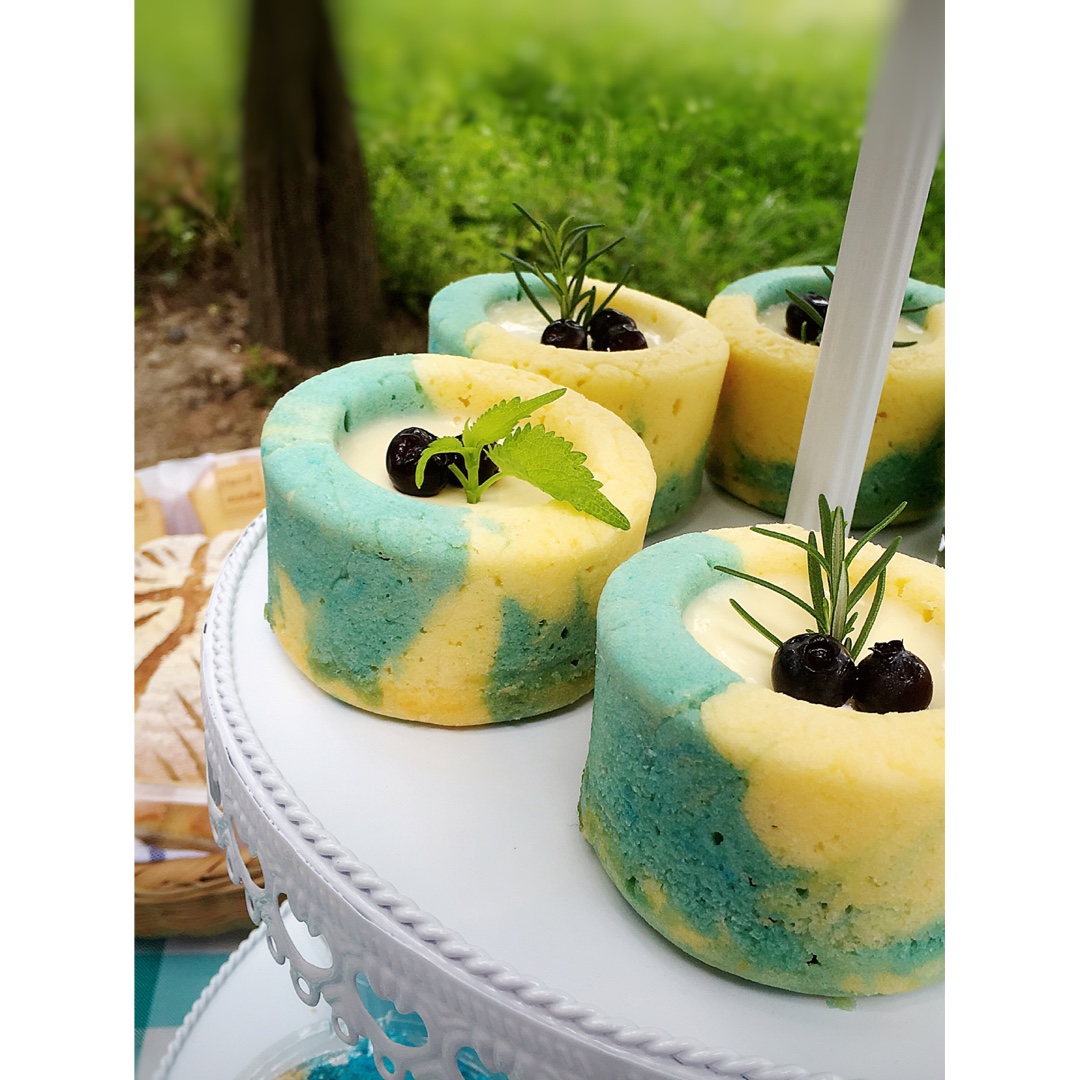 虽然是蓝色主题,樱桃的红色,也为美食增色。