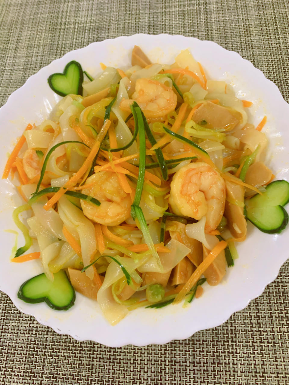 网购的干凉皮,泡发后加上黄瓜丝小米啦👍