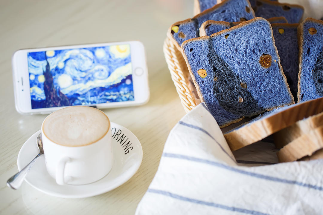 杂果酸奶杯遇室温挂着水珠;卡布奇诺冒着氤氲热气;吐司抹的牛油果酱刚刚从搅拌机倒出来;蔬菜沙律正吸着蛋黄酱的养分;戚风蛋糕切成了米字块;“叮”一声烤箱在报警迷迭香鸡翅已烤好……阳光穿过玻璃窗印在桌面,是烟是影,若有若无。