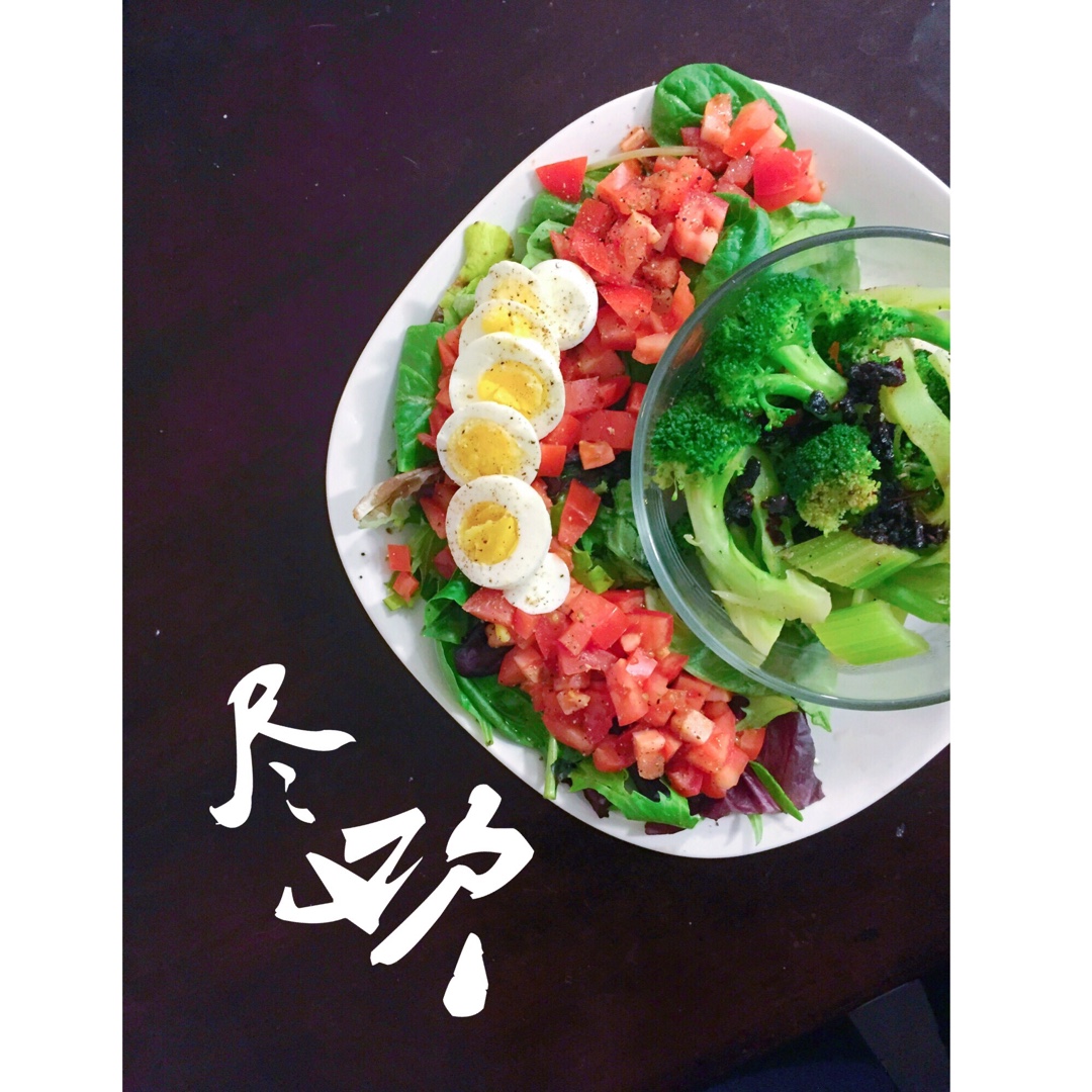 沙拉on沙拉on沙拉on!!水煮西兰花拌鱼露和辣椒油和一点点陈醋、简直太好吃了!室友們都惊讶于我的奇葩口味,哈哈。(ma...