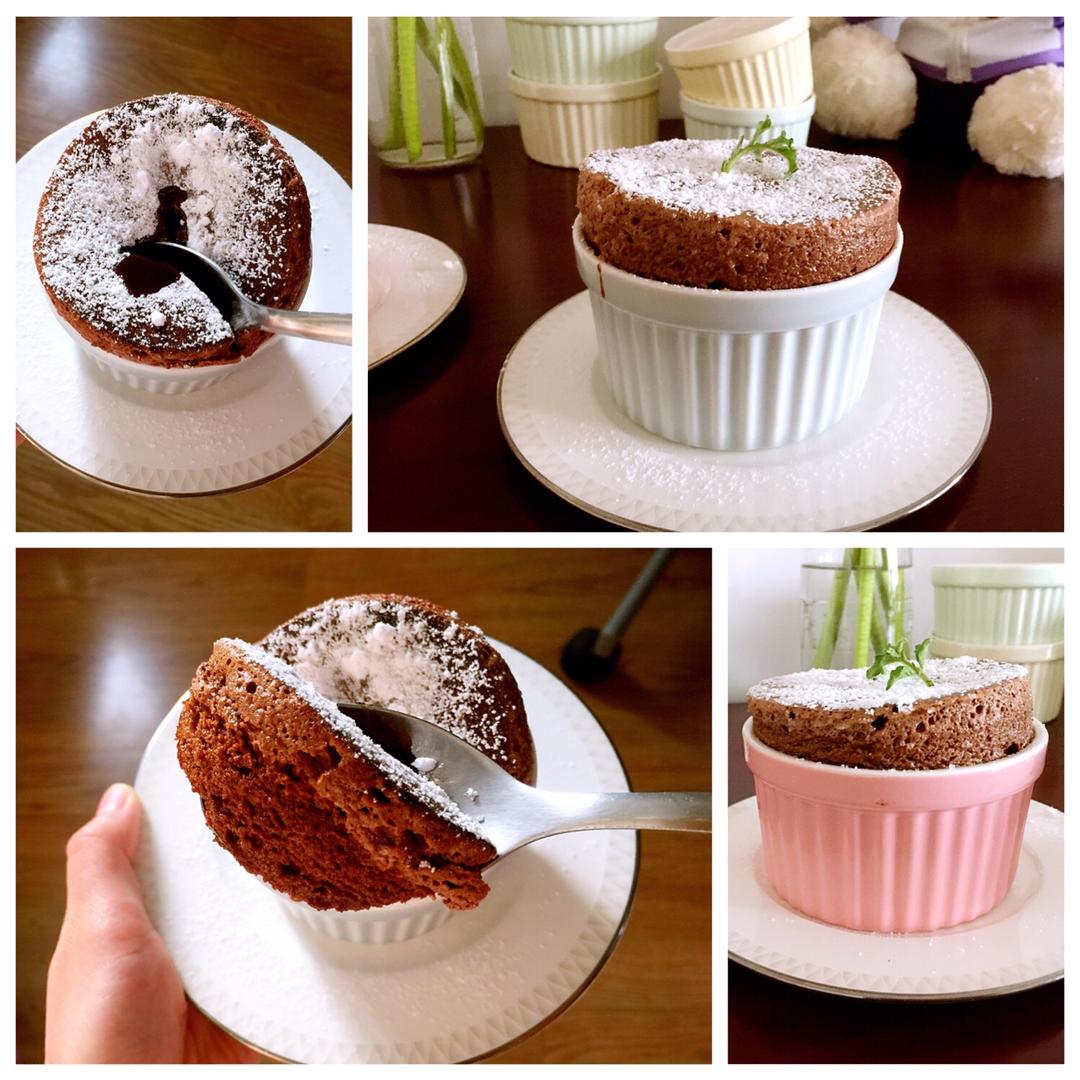 法文系“膨胀”,蛋糕出炉遇到冷空气会快速塌陷,必须即时食用,拍照的时候已经矮了一半,不过冰箱冷藏过的口感...