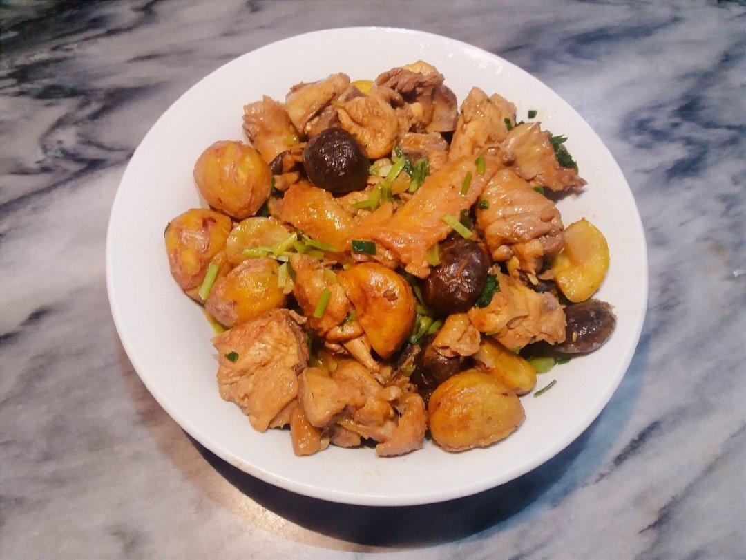 栗子是我自己做的糖炒剩的,鸡块是两只鸡腿剁了一下。没想到还挺成功,主要是栗...