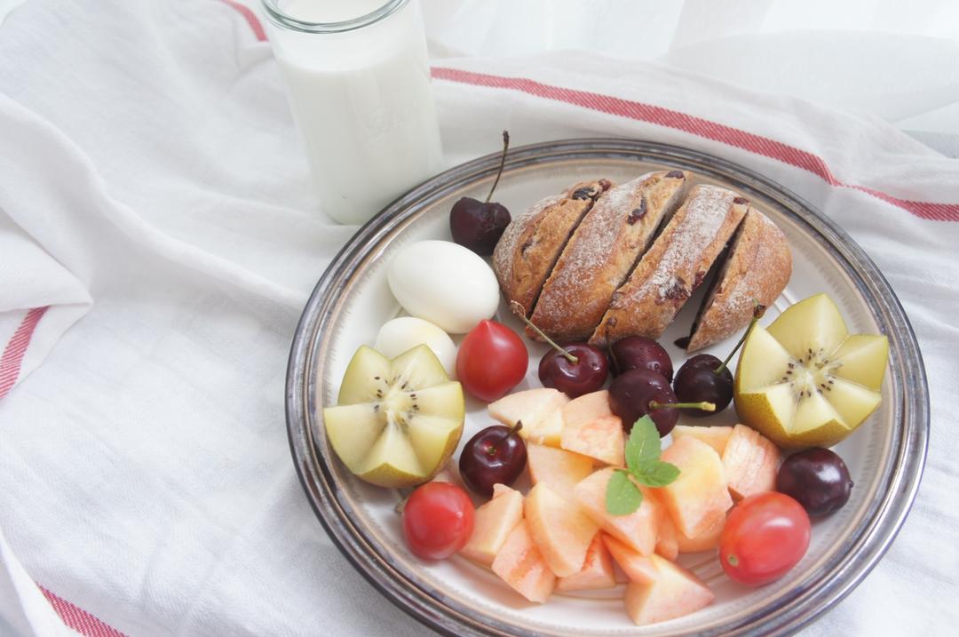 蔓越莓小欧包,鸡蛋鸽子蛋,牛奶和水果们~