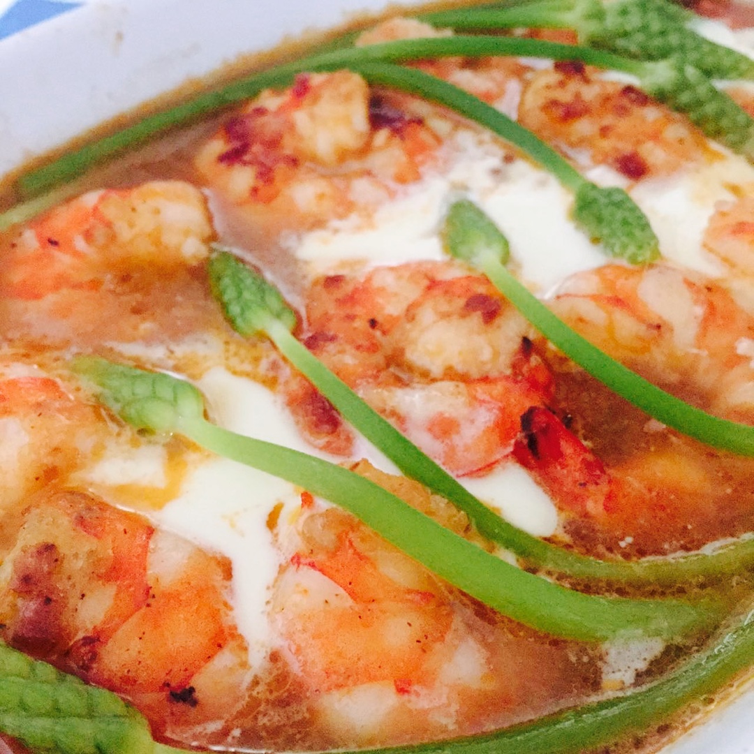 美式酱汁煨虎虾配野生芦笋
