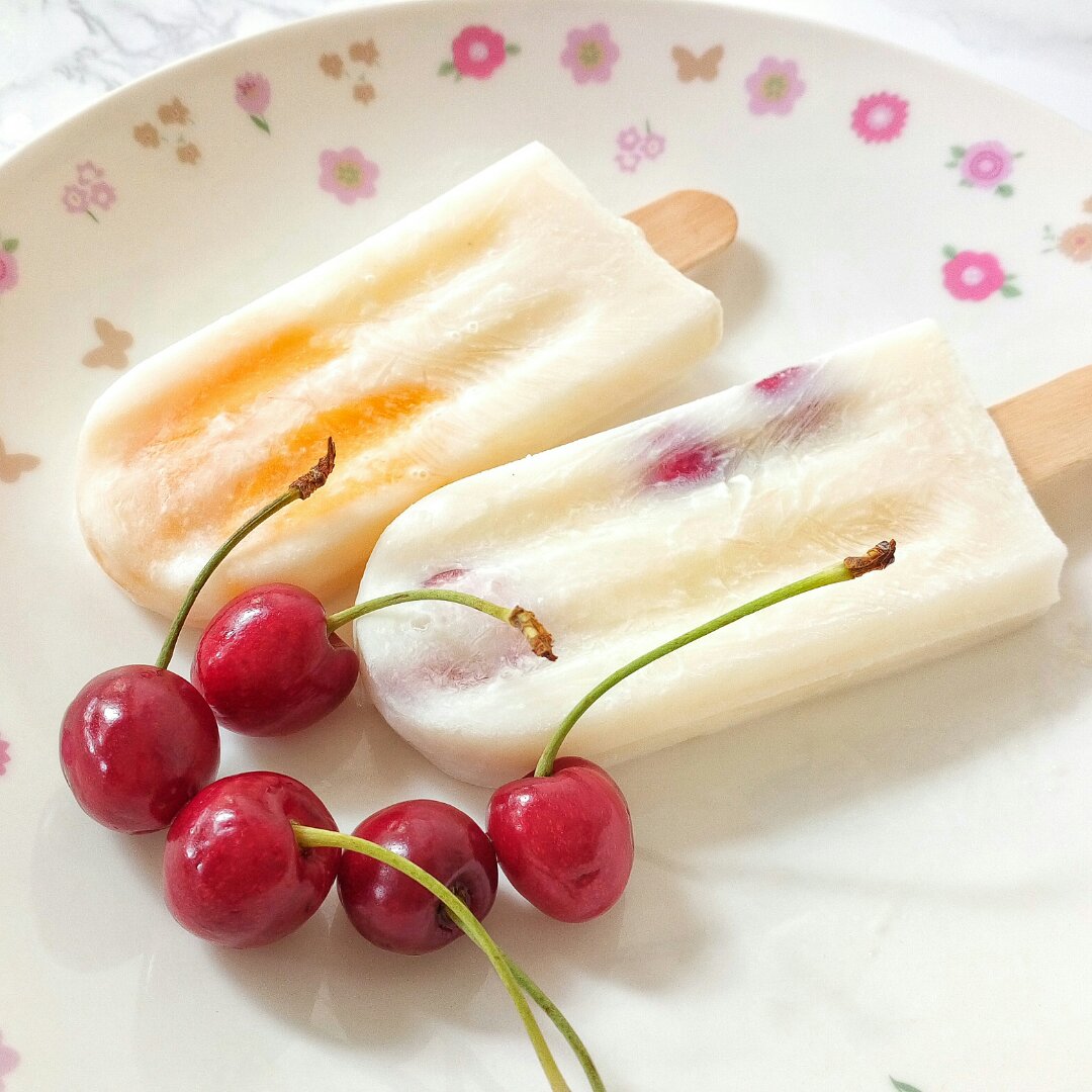 芒果樱桃酸奶冰棒~失败啦冰渣太多心塞(´-ωก`)