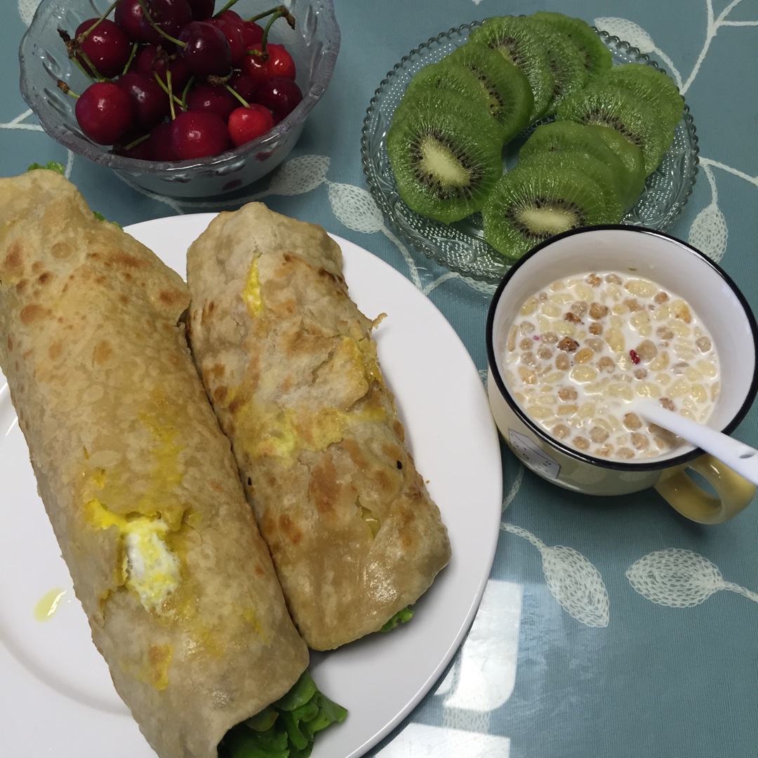 早餐😄第一次尝试的鸡蛋灌饼,样子很丑,可是味道还不错
