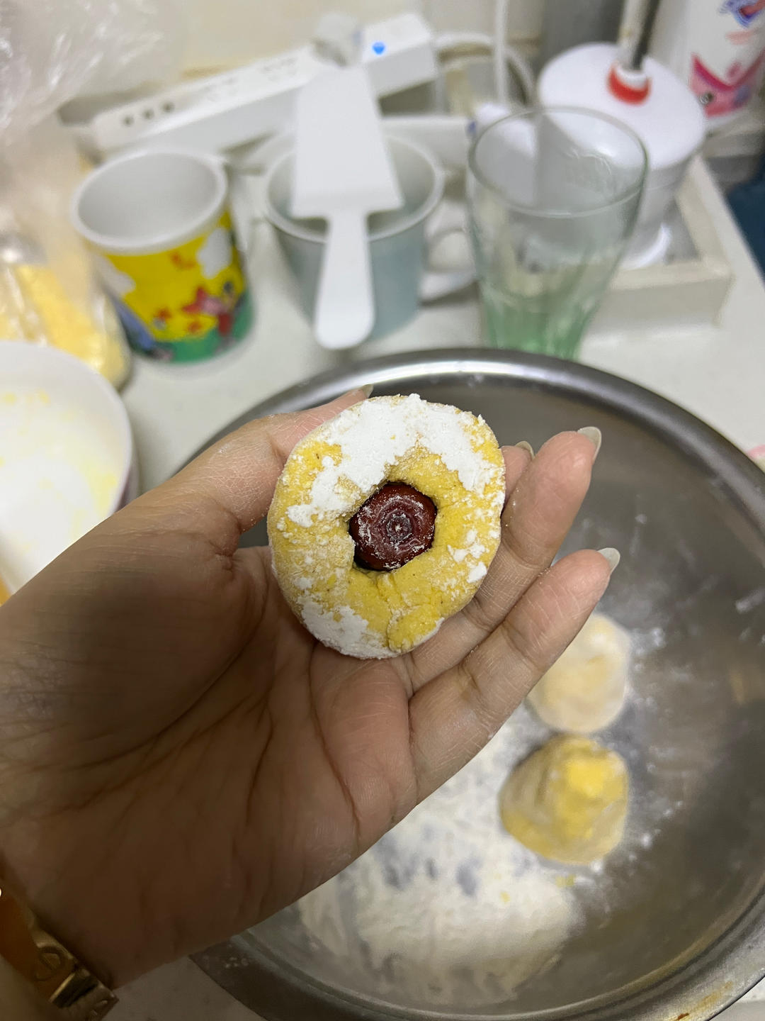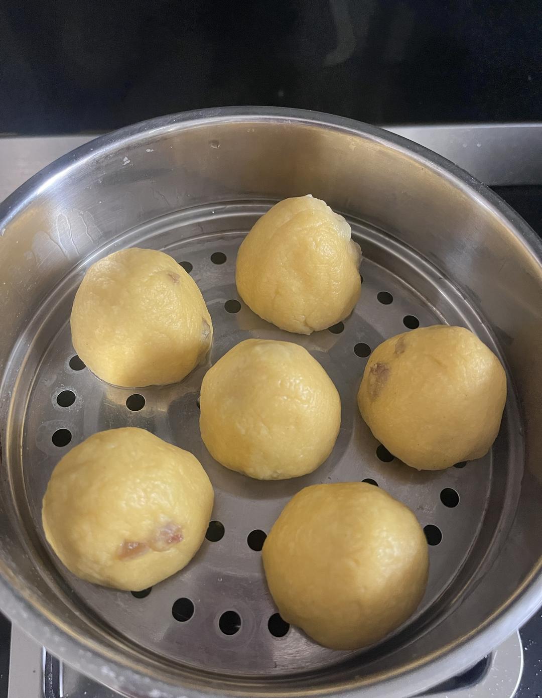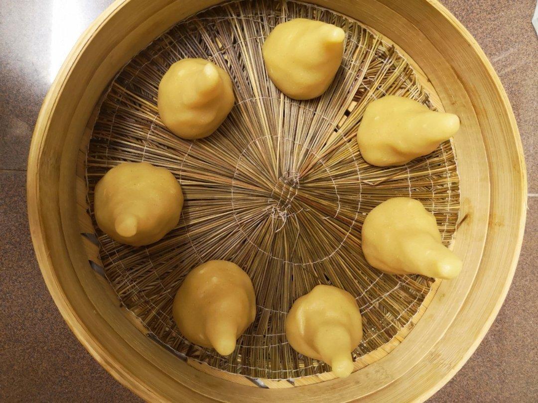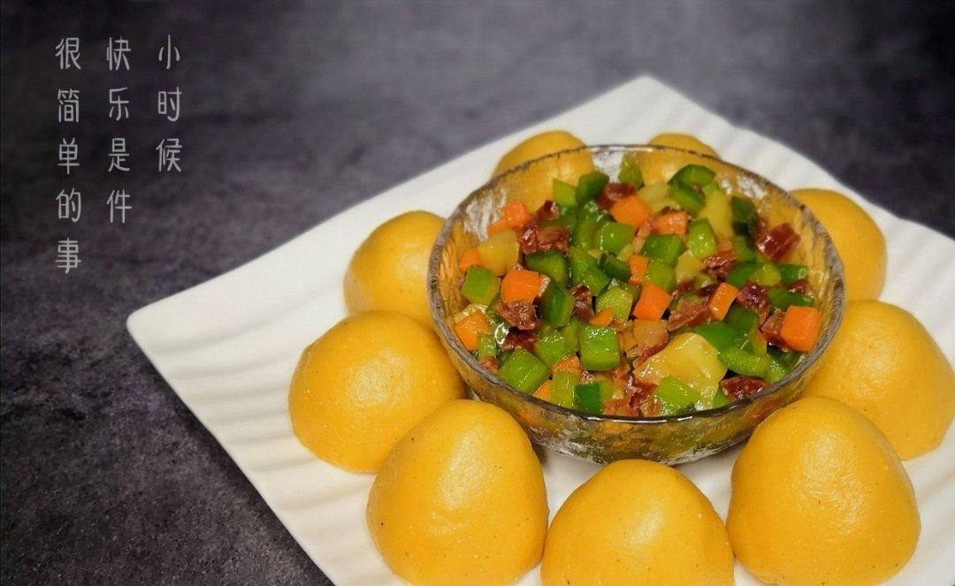 没有玉米面了,用玉米糁代替了,所以窝窝头不够光滑细腻,加了点糖,...