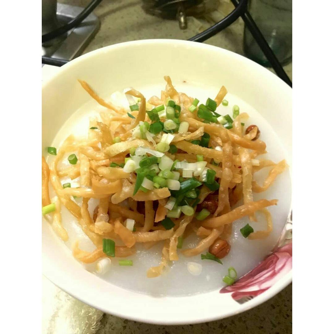 用豆浆机打的米糊,水面炸的撒子,没放辣椒孩子吃的。