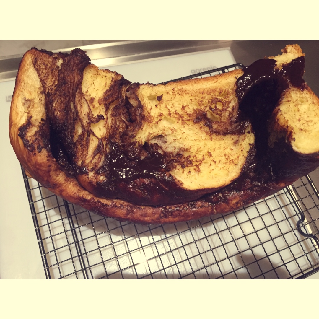 没有咕咕霍夫模具,用戚风模具烤的,爆浆,真心腐败啊!这吃一块太罪恶了