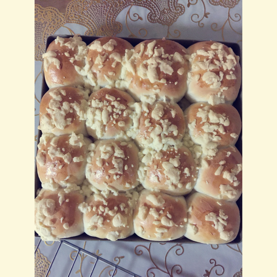 明天的早餐,酥粒的方子里黄油量有点多了,怎么都搓不碎,大块更好吃