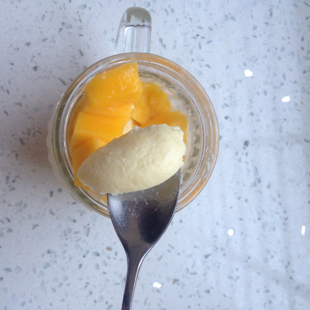 芒果布丁,不用烤箱方便快捷。按方子可做三杯,明天尝尝看,好吃就加倍做。