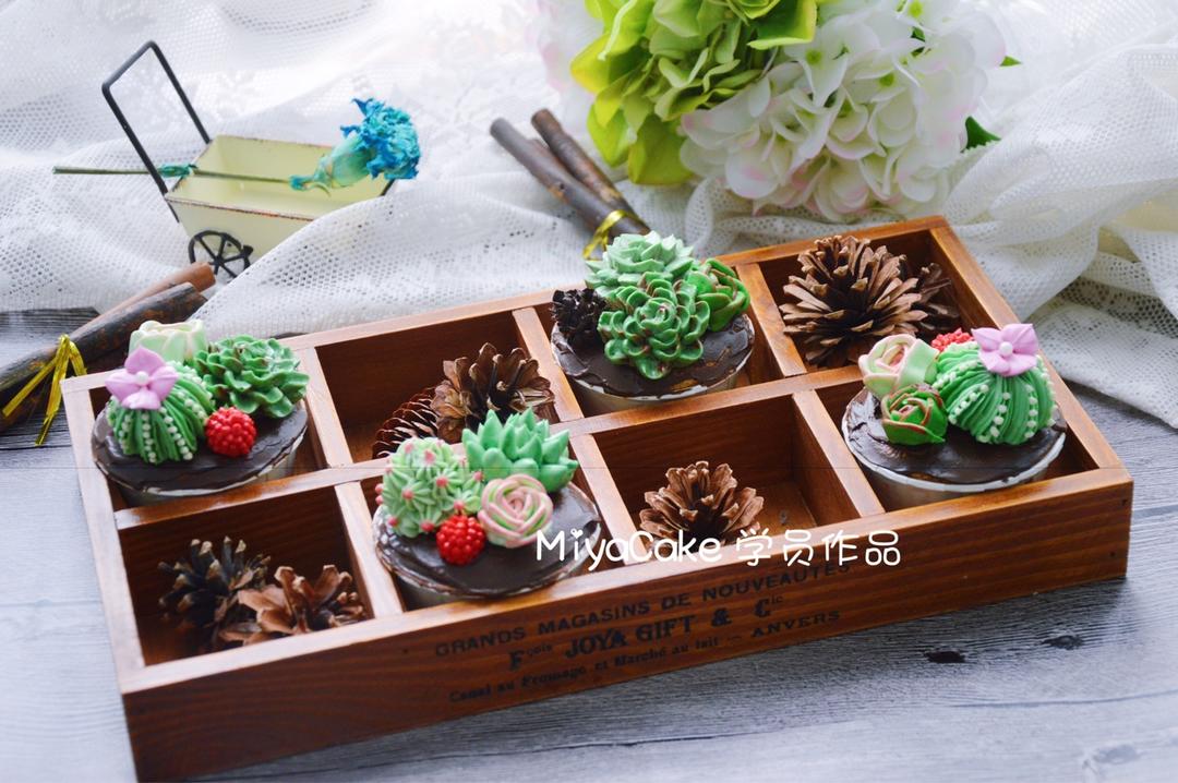 韩式裱花初级课程,多肉纸杯蛋糕学员作品👌🏻
