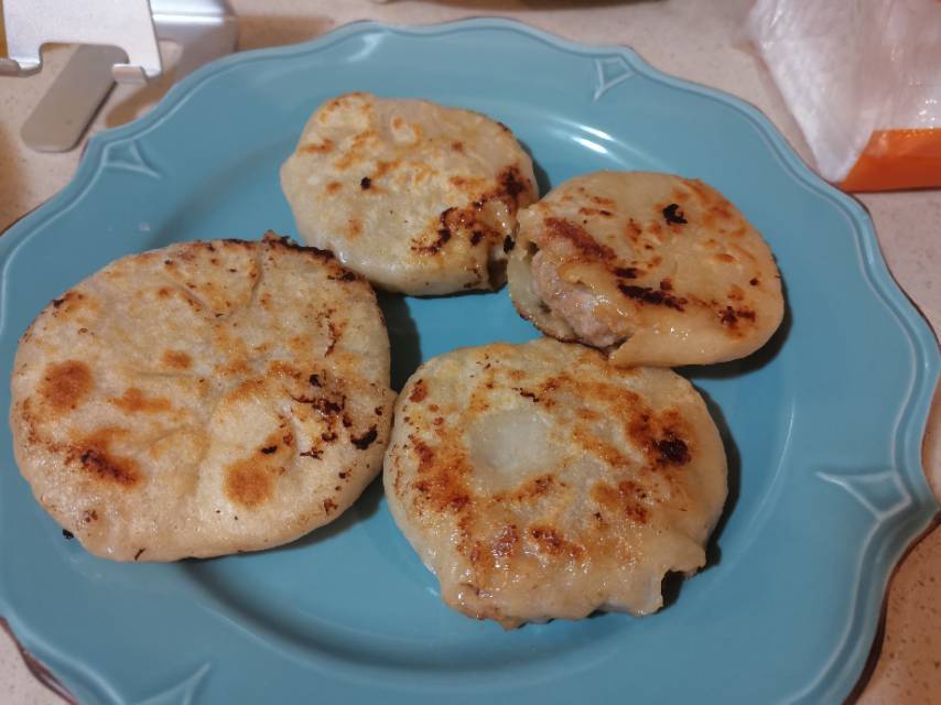 面弄得硬了,导致面皮厚不容易熟,所以两面煎黄了以后我又加水闷了下,但面皮的口感还是不好,所以面皮一定要软才好吃#晚餐•2...