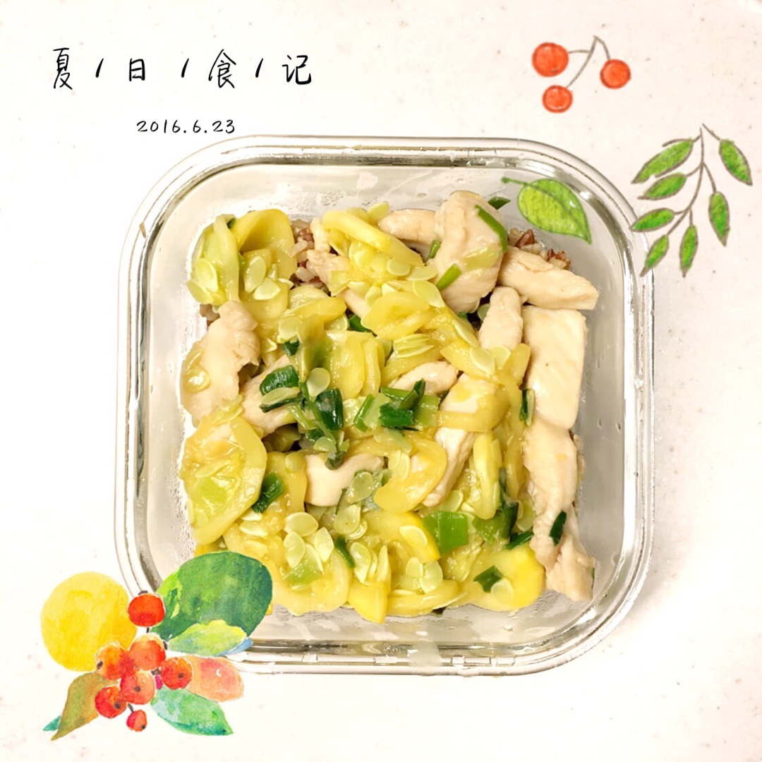 西葫芦炒鸡胸肉,看着很清凉的便当~