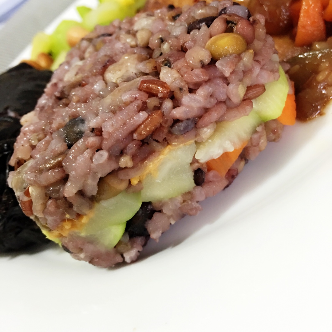 杂粮饭团,内包肉松、西葫芦、胡萝卜。我喜欢任何包肉松的🍙