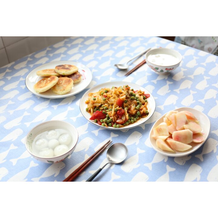早餐:土豆饼,黑芝麻汤圆,番茄炒圆白菜,桃子。