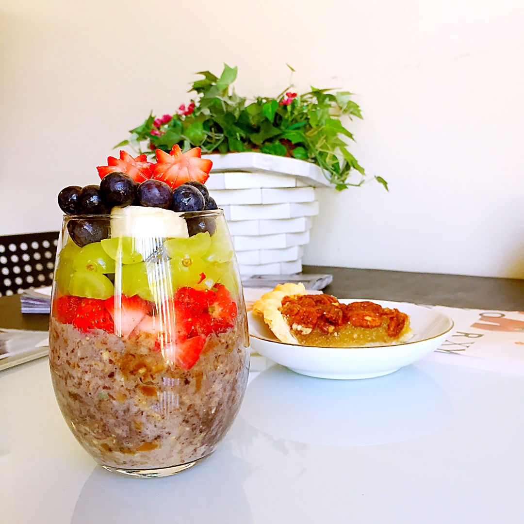 Overnight oat meal! 自制酸奶,燕麦,brans,奇异籽