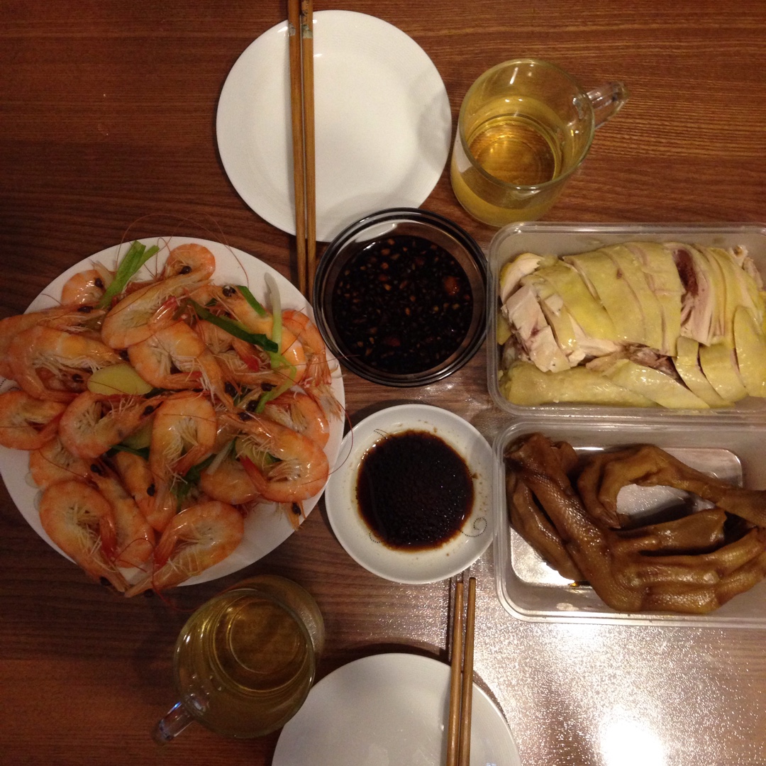 只要有空去大菜场必买的白斩鸡,鸭掌是嘴馋时的零食,基围虾现煮先吃,鲜甜Q弹的不要不要的