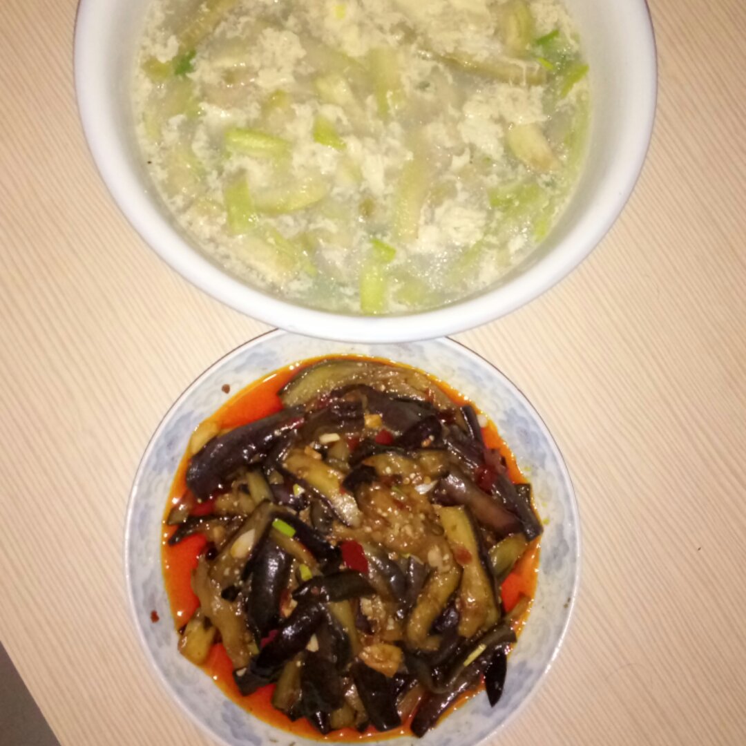 晚餐,丝瓜汤,豆瓣烧茄子.