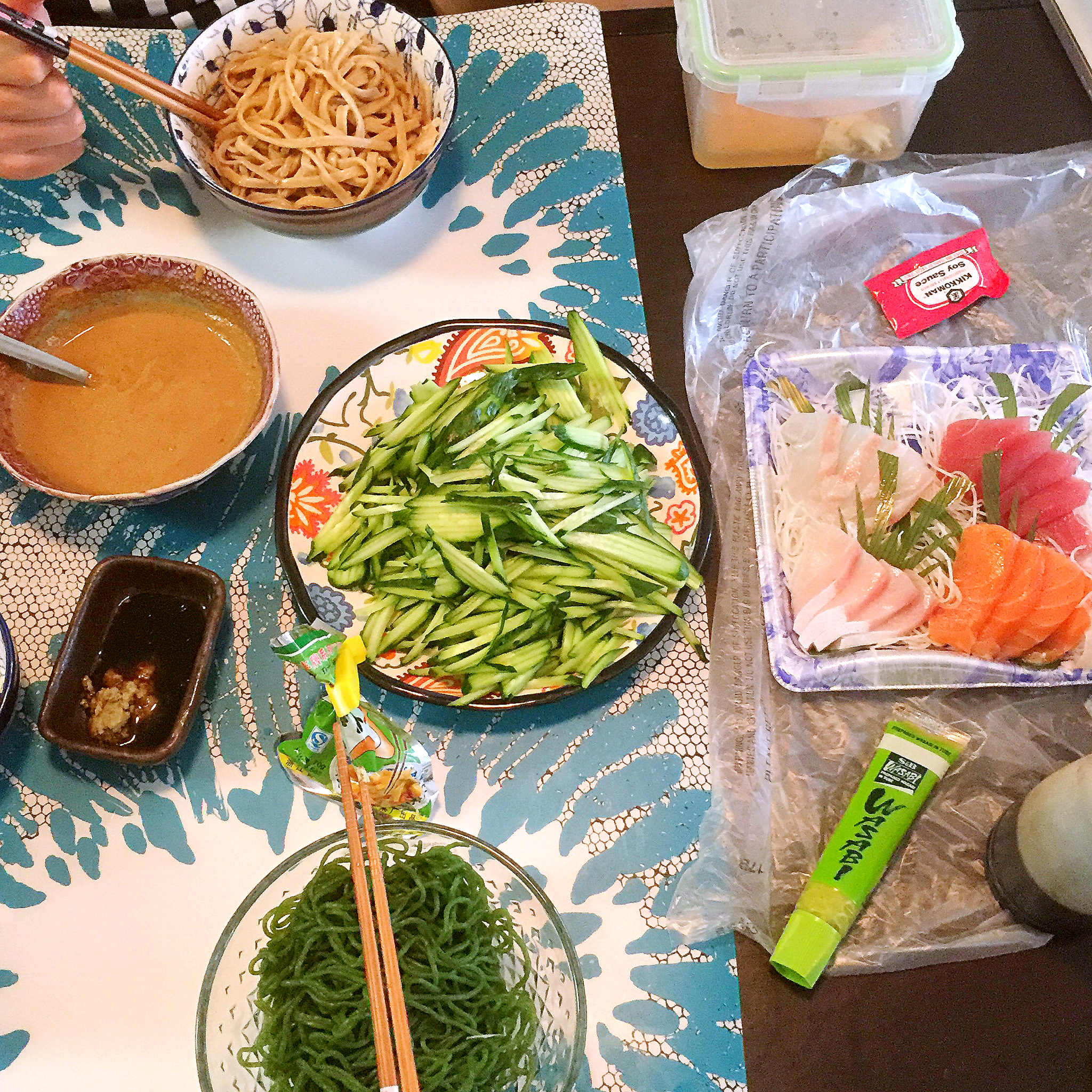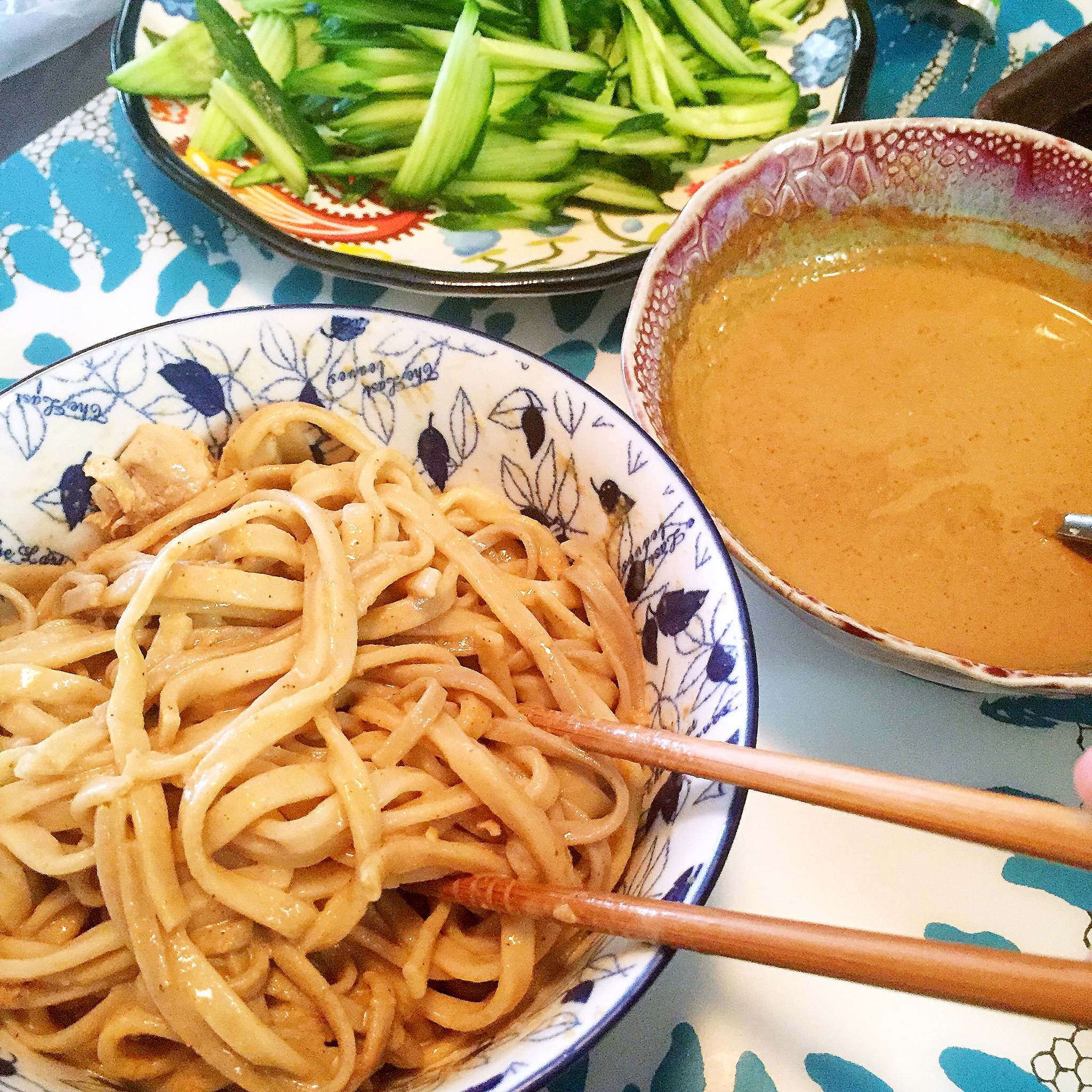 王老师吃的还是正常面条啦~ 麻酱汁又淡了,后来又加了酱油盐。