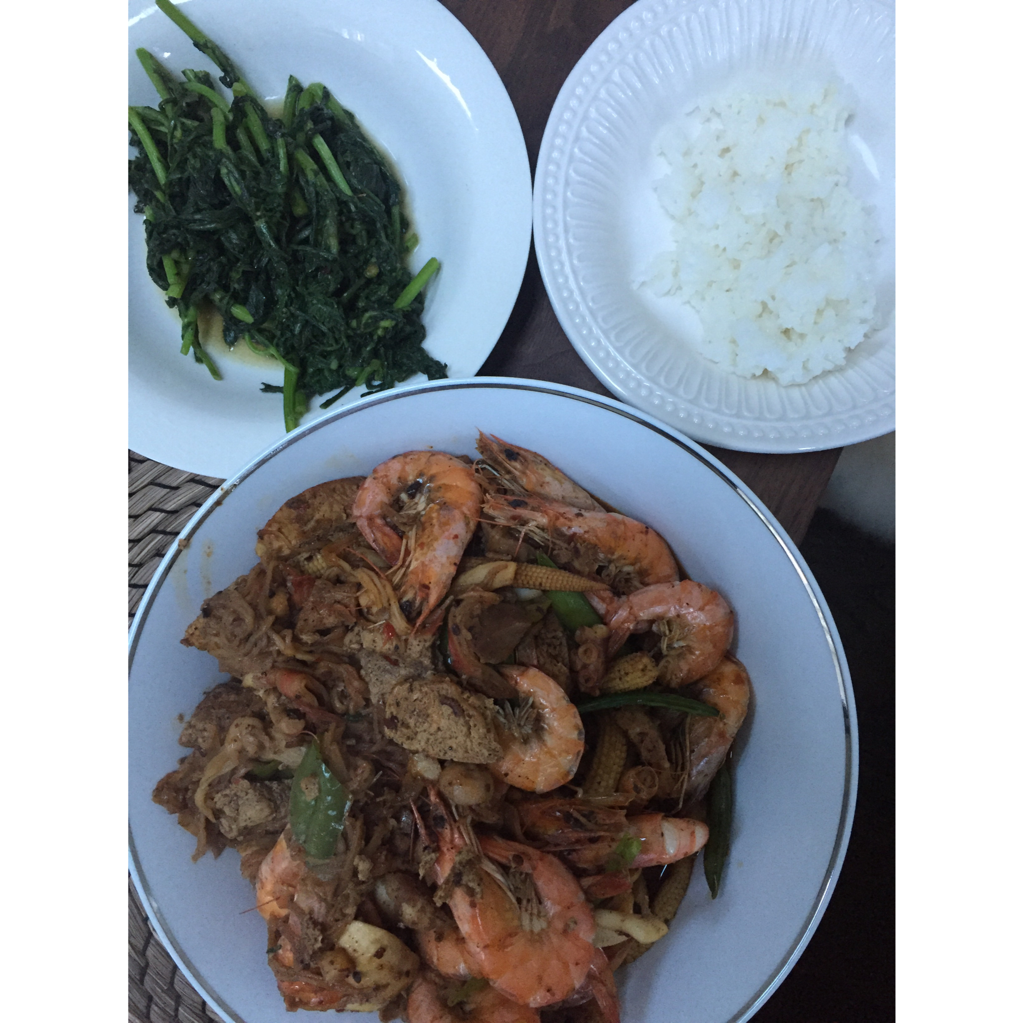 海鲜大杂烩和炒茼蒿
