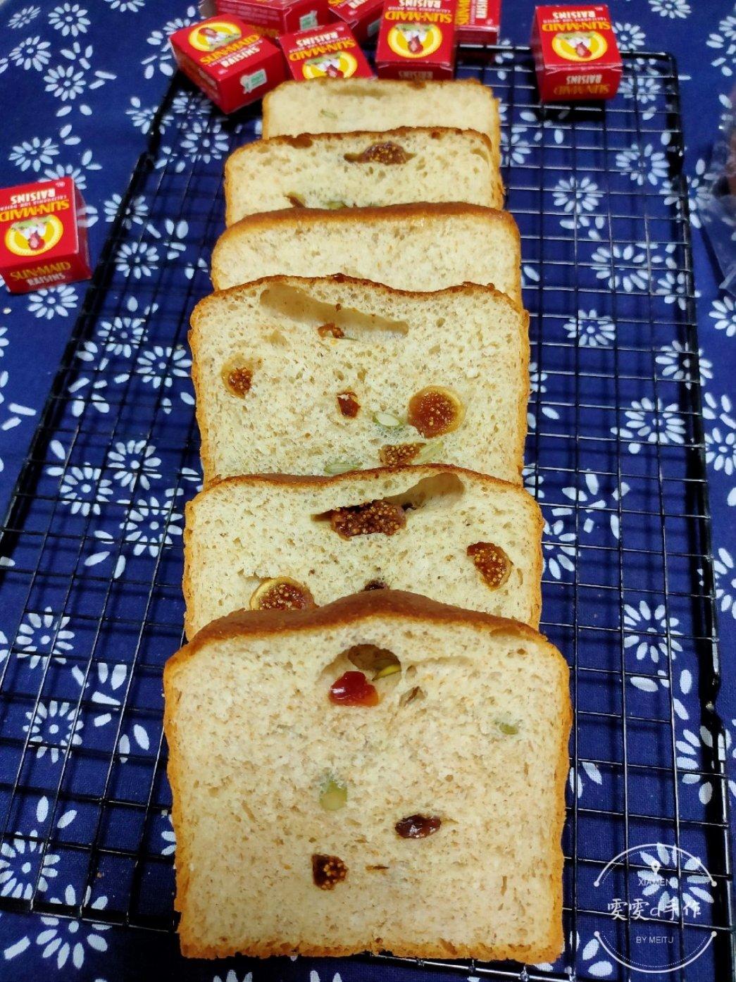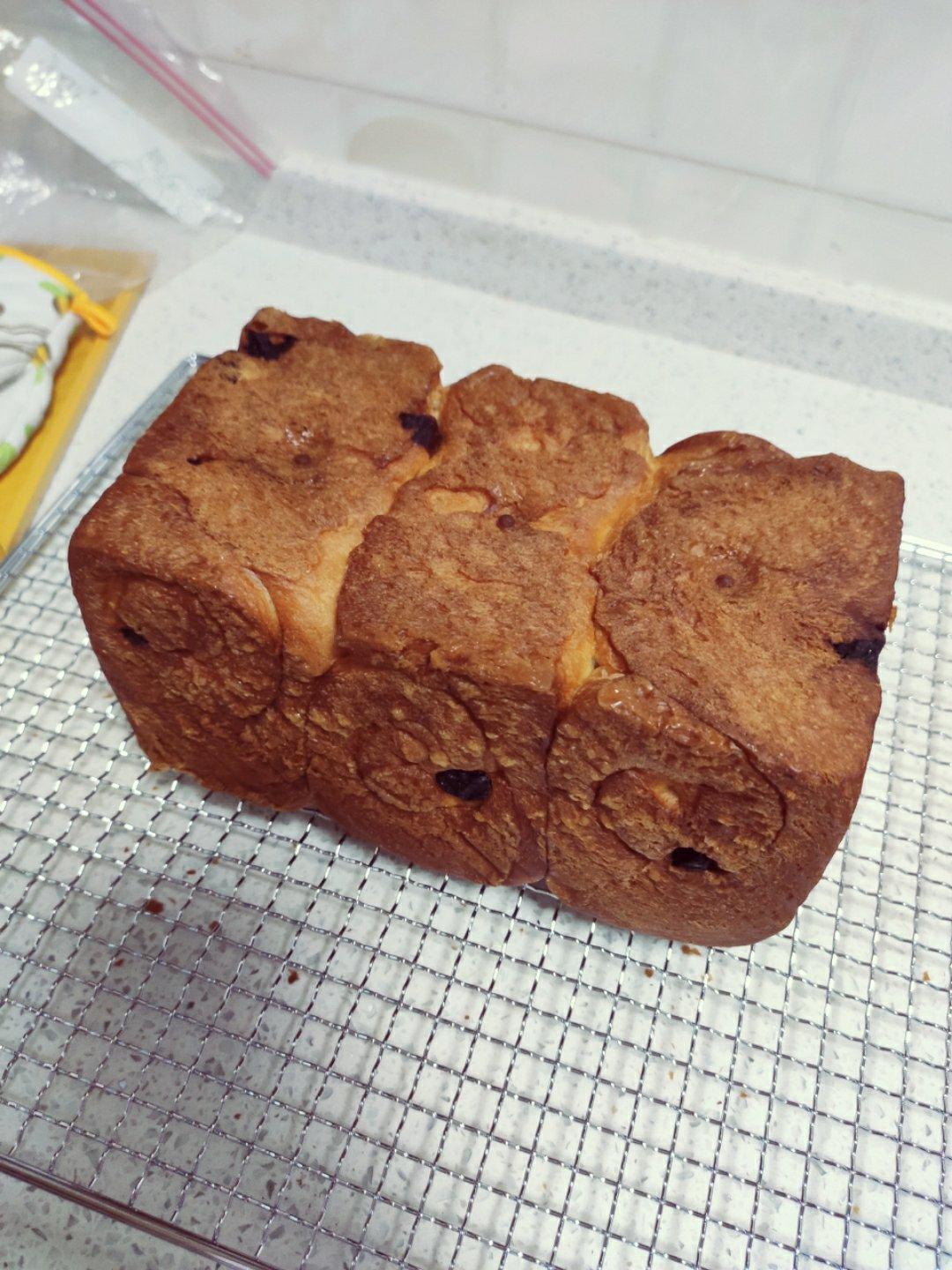 在原有方子基础上加了20g老面。最近经常揉面粘手,也不知道咋回事,下次液体继续减量看看吧。新的吐司盒还蛮好用~#葡萄干土...